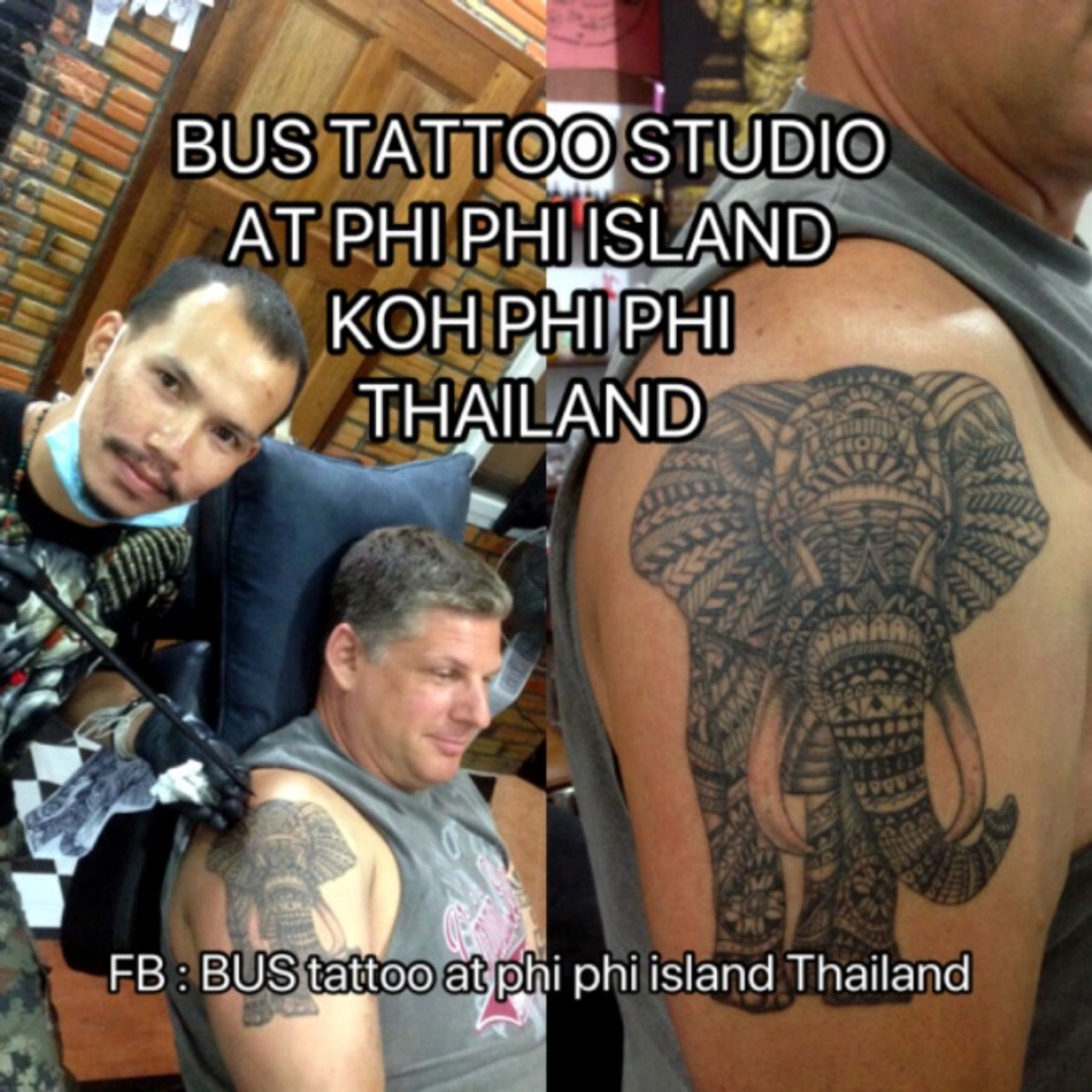Situated in the near koh phi phi police station , Bus tattoo is a small studio run by Mr.Bus, an experienced and talented tattooist who can perform his art both with bamboo stick and with electric tattoo gun. Cover ups, free hand designs, custom designs - any style can be realized at Bus tattoo studio. As in mostly any shop nowadays, needles are disposable and used only once at Bus tattoo studio