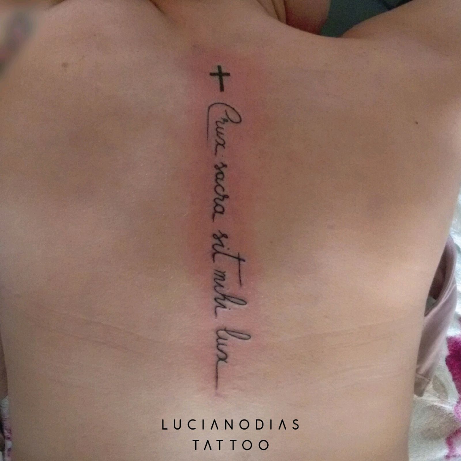 #cross with #prayer to #stbenedict #lettering tattoo made by me at the Black Box Studio.