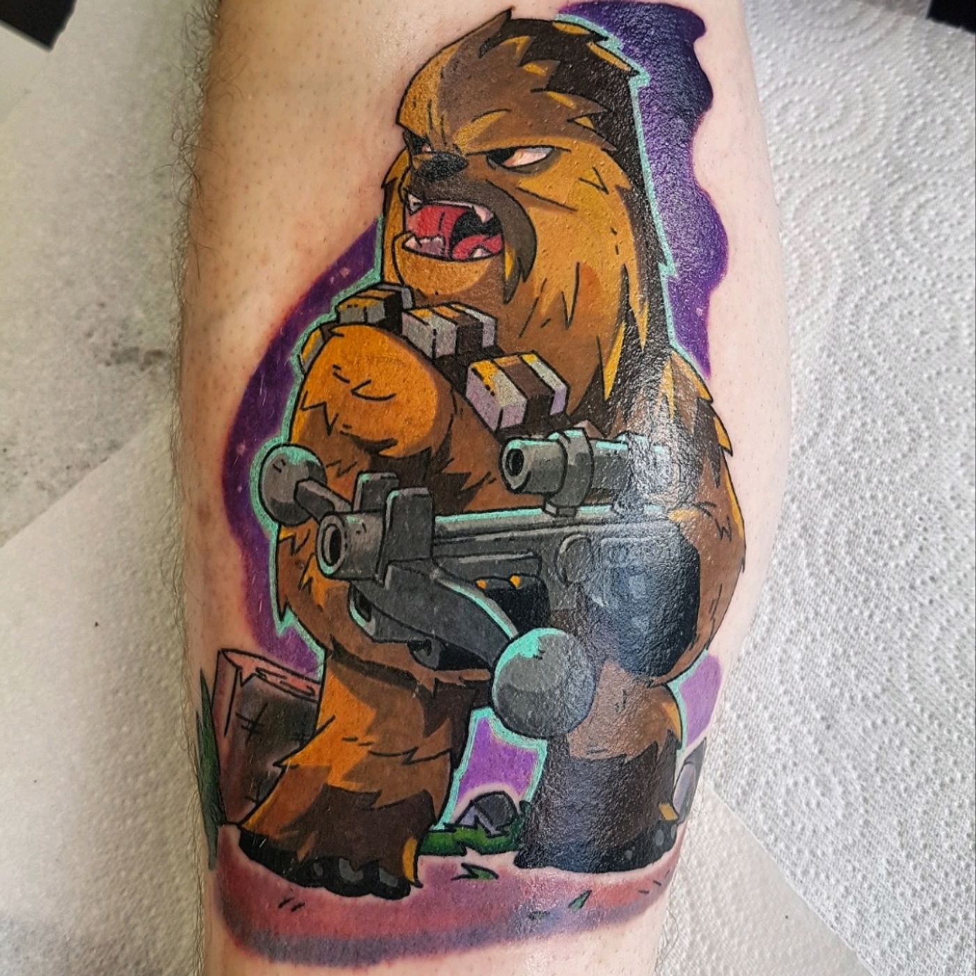More of my colour work tattooing. Design by laufman. #tattoo #chewbacca #chewie #starwars #starwarstattoo #wookie #colour #newschool