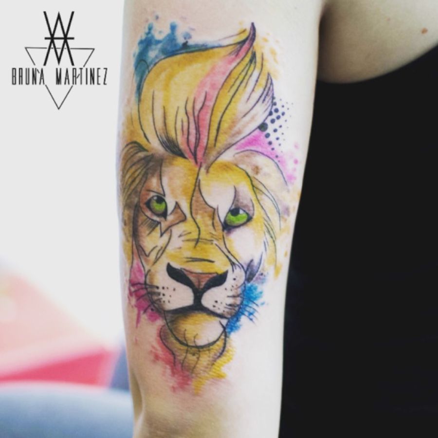 Por Bruna Martinez Instagram @brunaamartinez hellviewtattoo@gmail.com #tattoo #tattoo2me #tattooflash #art #artist #tattoolikeagirl #BruMartinez #hellview #cwbtattoo #flashtattoo #lion #watercolor