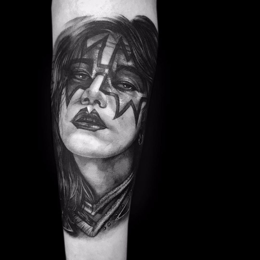 Ace by Jimi May #JimiMay #realism #realistic #hyperrealism #portrait #blackandgrey #Kiss #music #musictattoo #Ace #AceFrehley #stars #rockandroll #tattoooftheday