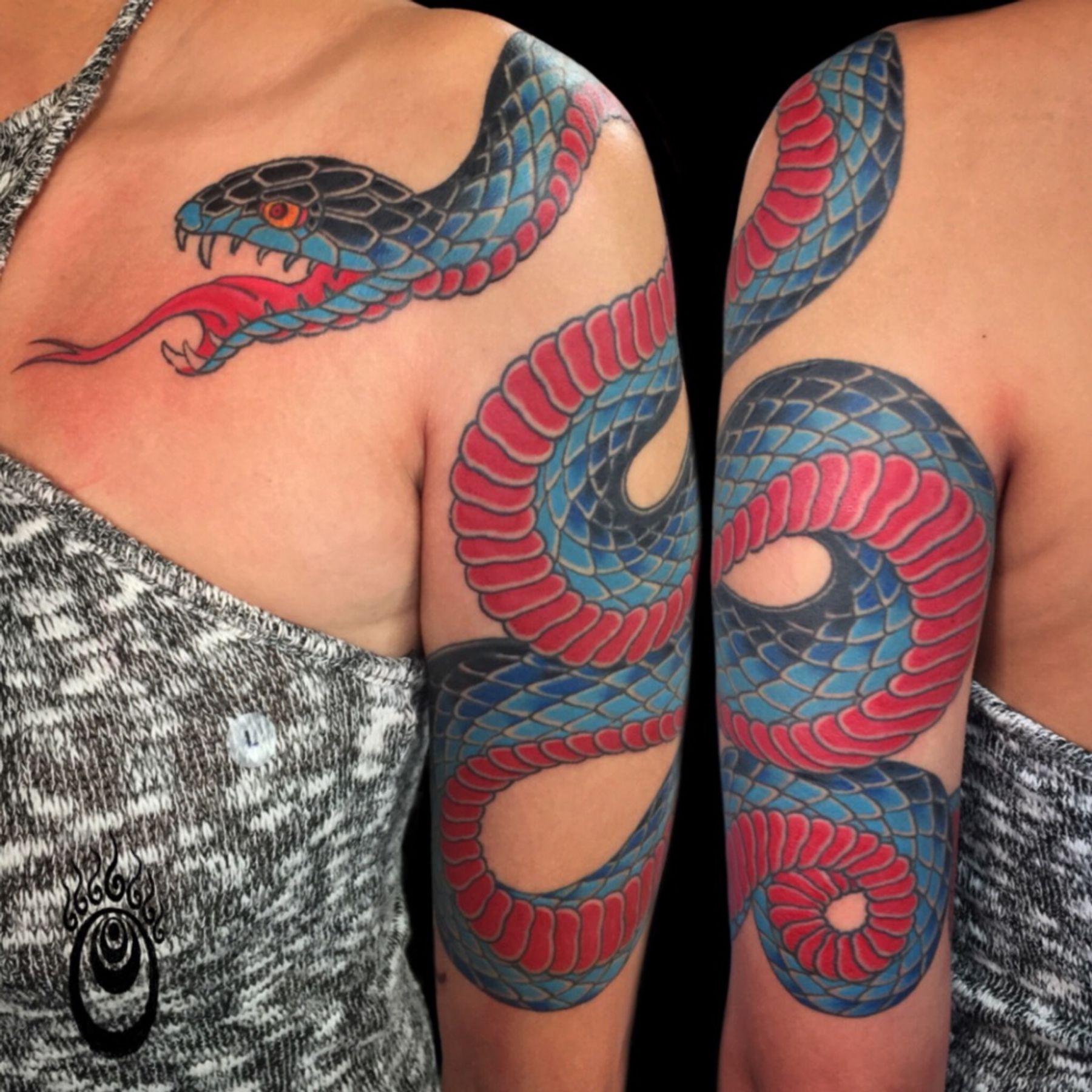 Snake Tattoo. #snake #snaketattoo #japanese #japanesetattoo #tattoooftheday #color