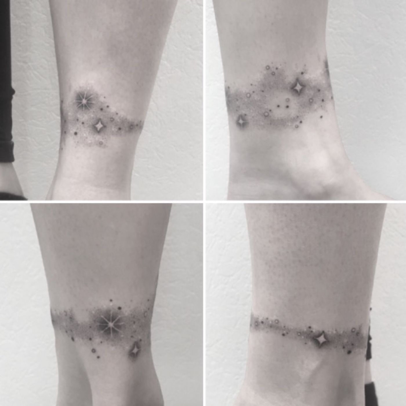 #stars #starstattoo #sparkles #sparklestattoo #galaxytattoo #etoile #etoiletattoo #scintillements #ankletattoo #anklet #bracelettattoo #girltattoo #blackandwhitetattoo #dots #dotwork #petitspoints #stippletattoo #lespetitspointsdefanny #tattoolausanne