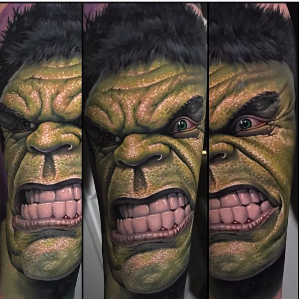 The Incredible Hulk by Evan Olin #EvanOlin #realism #realistic #hyperrealism #comicbook #color #movietattoo #tvshow #movie #tvshowtattoo #TheIncredibleHulk #thehulk #portrait #tattoooftheday