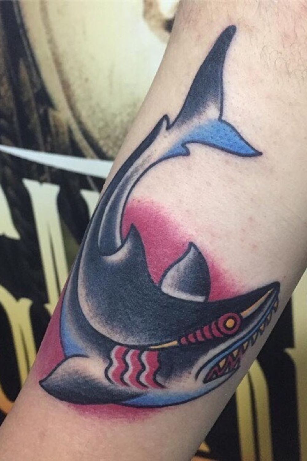 My new baby thanks to my friend @pabloptattoo(IG) for this great job done in @Surmatattoostudio(IG) #Shark #oldscholltattoo #oldschoolflash