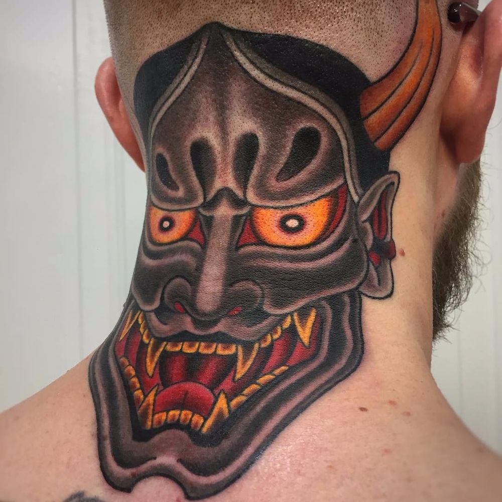 Hannya by Graham Beech #GrahamBeech #Japanese #color #Hannya #Hannyamask #nohmask #demon #folklore #deity #yokai #ghost #mask #horns #fangs #tattoooftheday