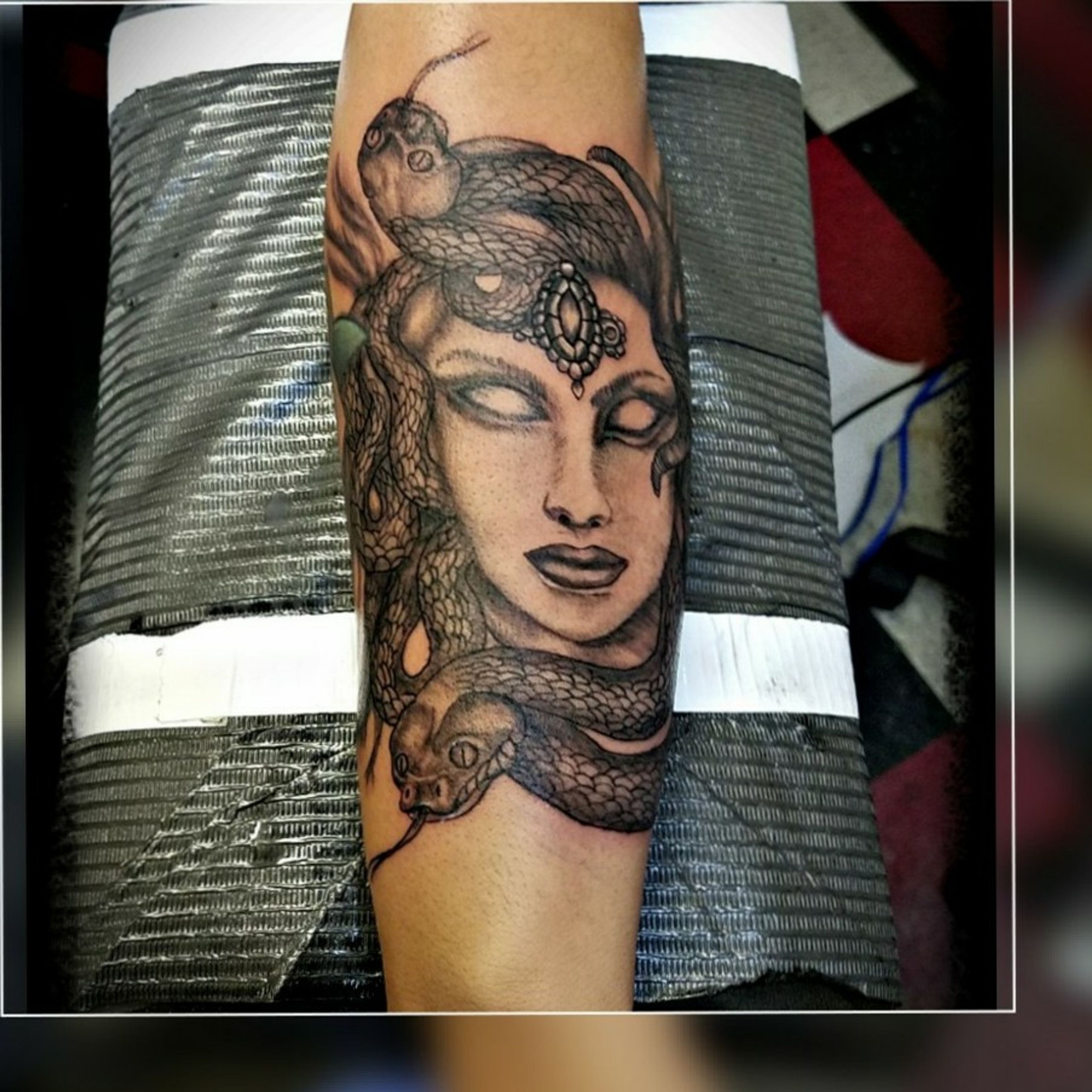 #blackandgreytattoo #medusatattoo #blackandgreytattoo #girlswithtattoos