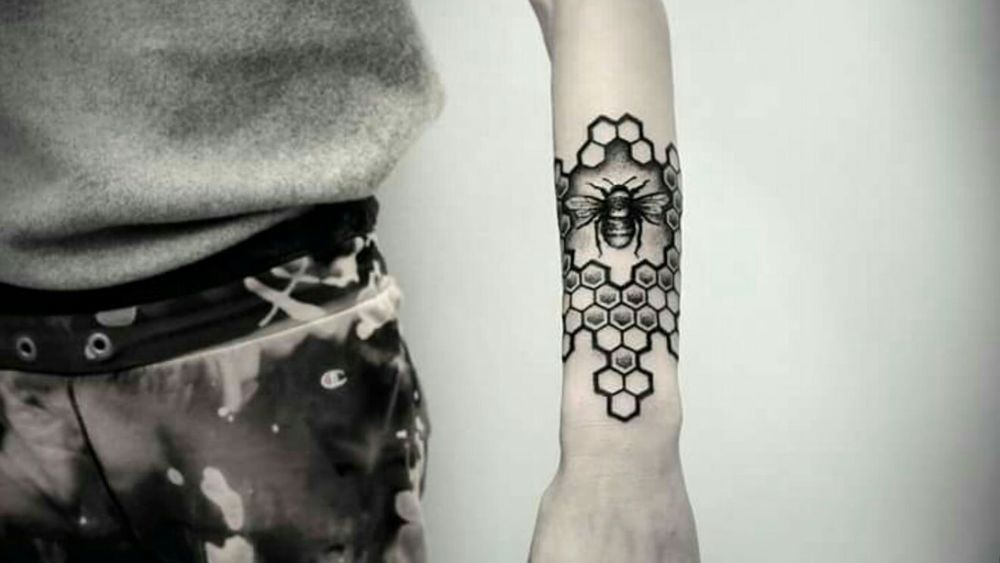#honeycomb #bee #insecttattoo #dotwork #blacktattoo