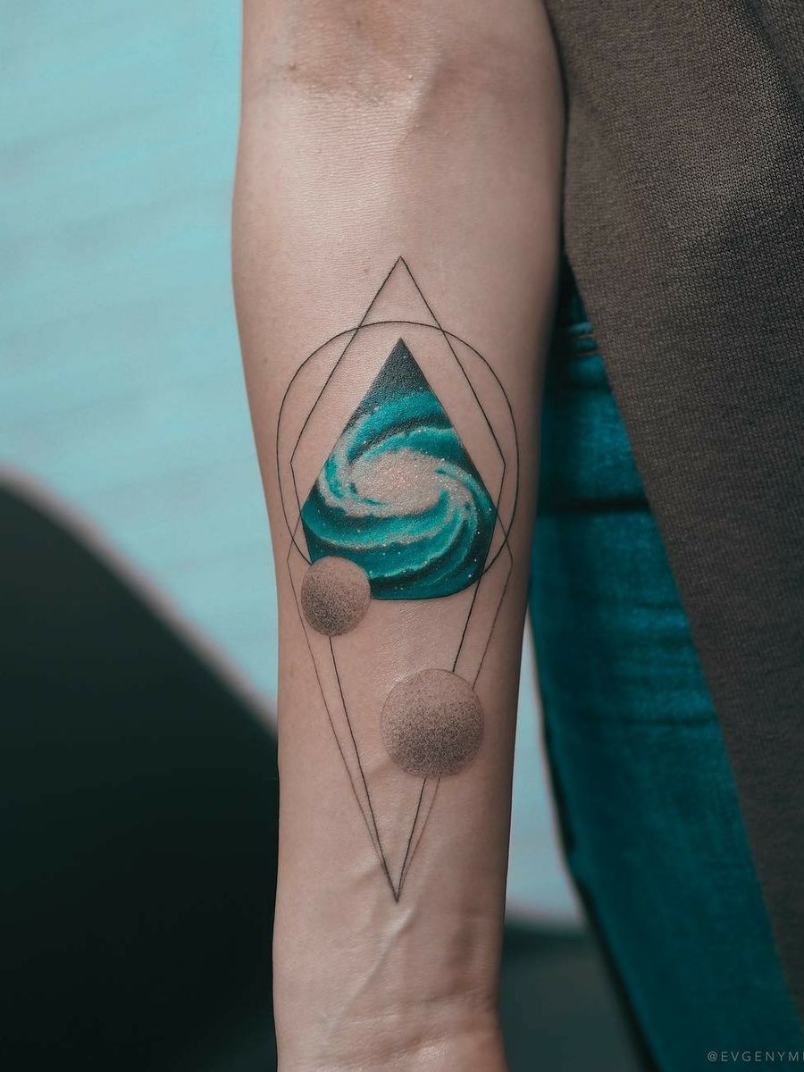 By #evgenymel #watercolor #planets #cosmos #dotwork #geometric #spacetattoo