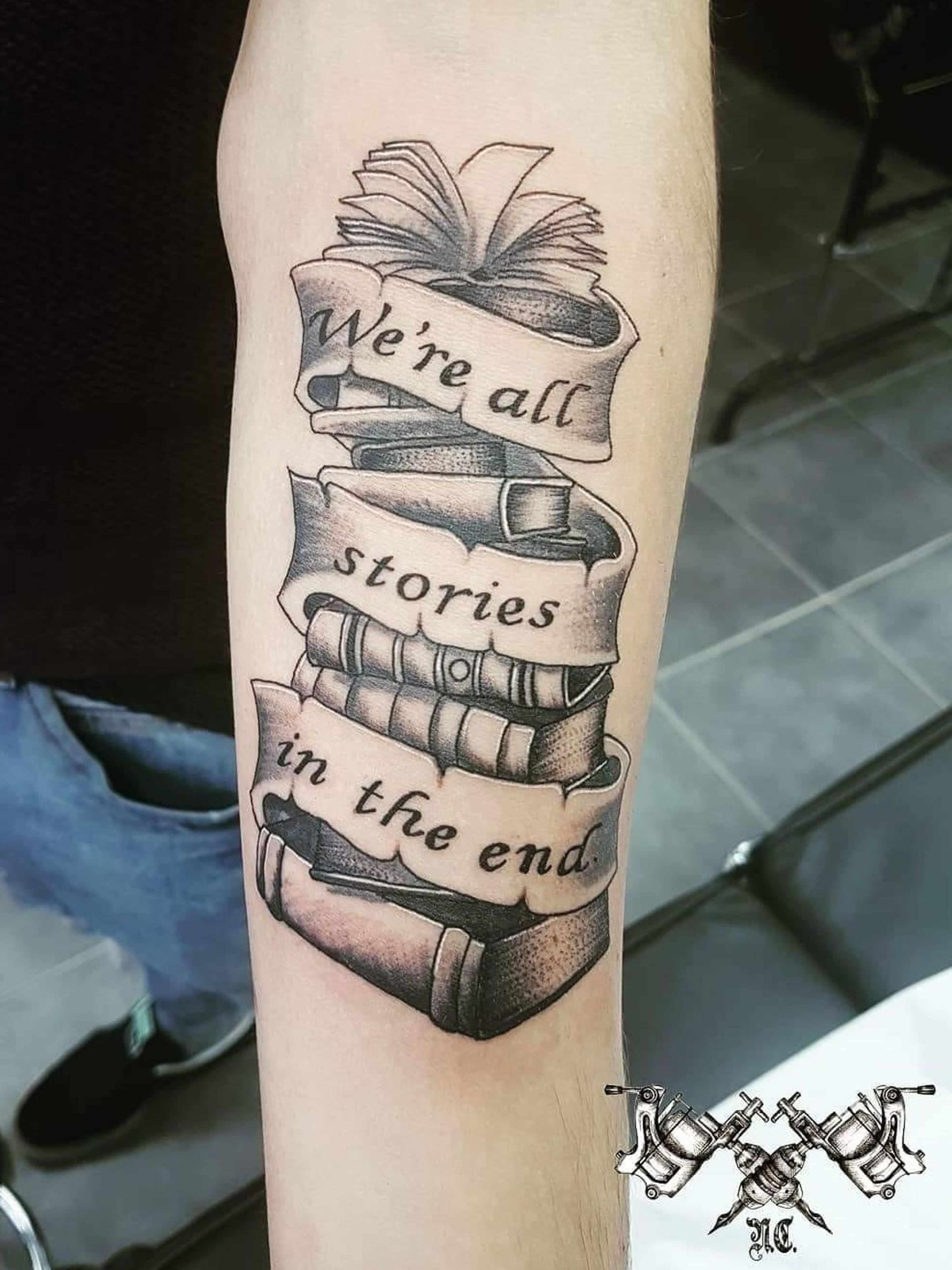 Vlad came to us for his first tattoo. Wanting something with a deep meaning using his reference we created this design for him. Thank you Vlad, it was a pleasure having you in the chair for the first time and we look forward hearing many more of your ideas. #Morden #TattooStudio #TattooLife #picoftheday #Mordenhallpark #Blackandgrey #wereallstoriesintheend #Tattoo #Newink #tattoovirginity #Nextchaptertattoostudio #London #TattooLondon #books #readingweek #life #ink #booktattoo #Piercingstudio #femaletattooartist #surreytattoo #surrey #customtattoo