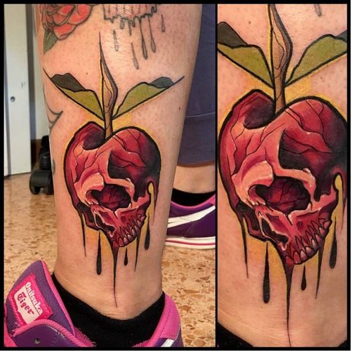 Poisoned apple tattoo by Francesco Bianco #FrancescoBianco #neotraditional #apple #skull
