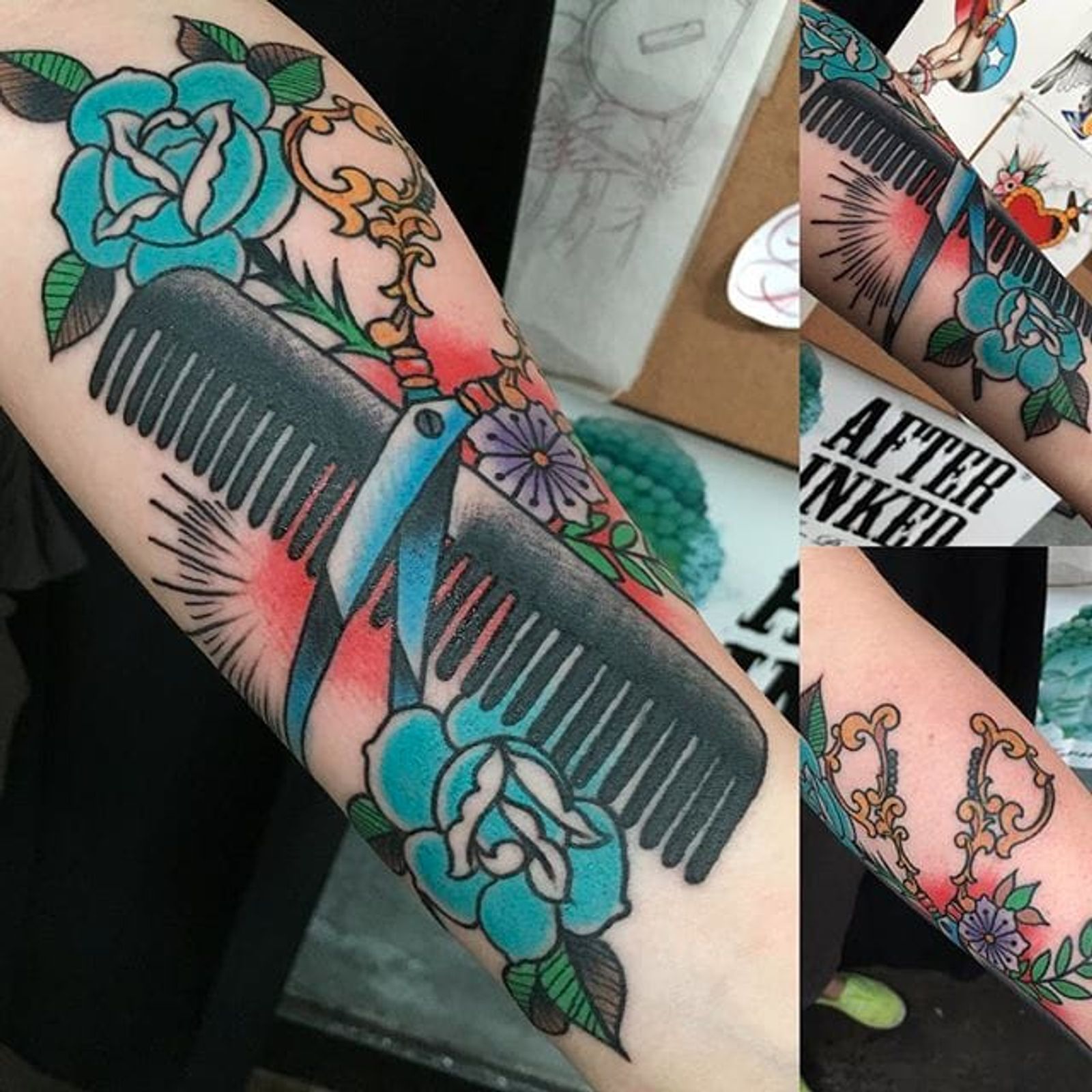 Scissors tattoo by Danny Pando. #scissors #hairdresser #comb #rose #dannypando