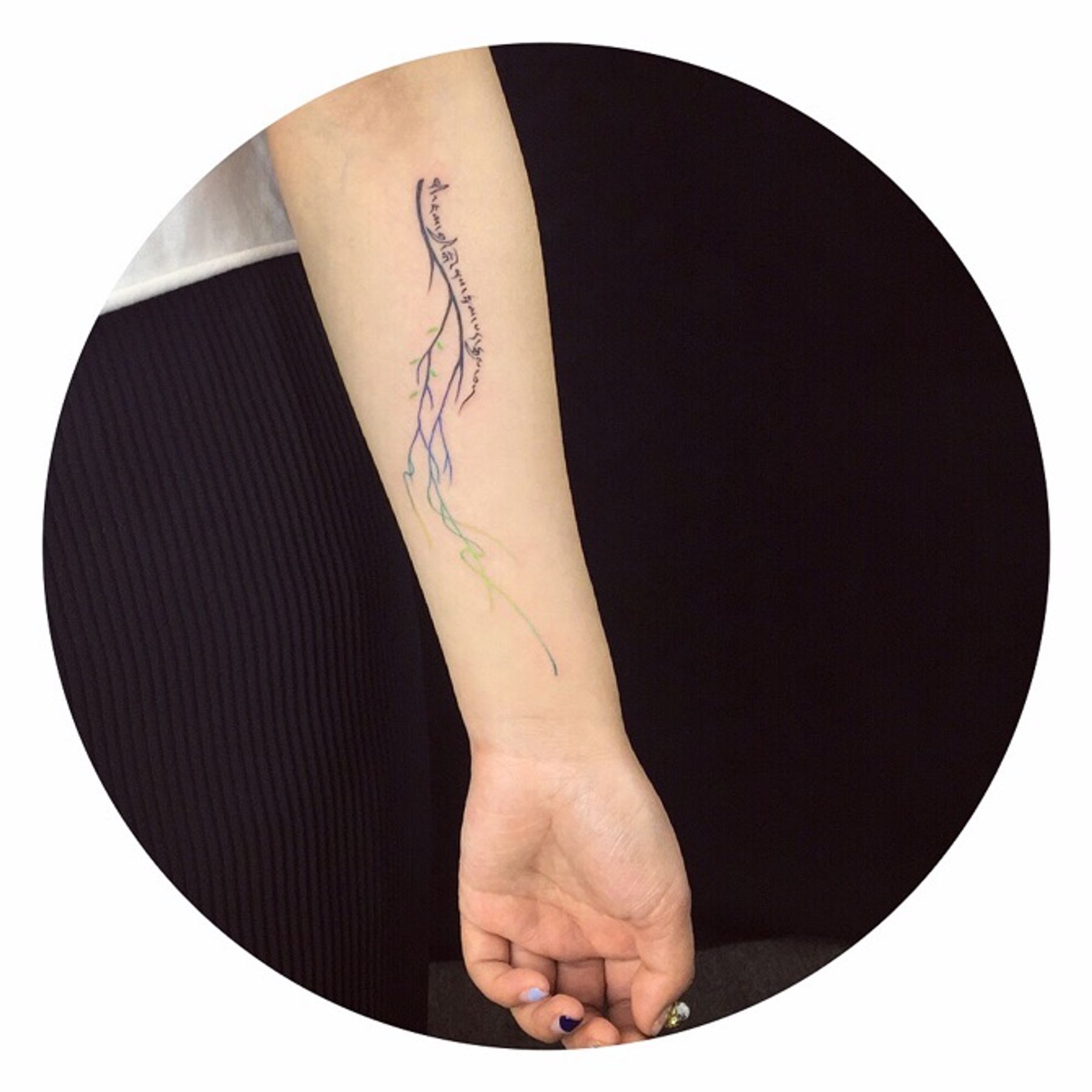 藏文与树 去年的作品 记得恢复好之后很美... #tattooartist #tattoo #tattooart #watercolor #watercolortattoo #watercolortattoos #watercolour #girlswithtattoos #girltattoo #tiny #tinytattoo #tinytattoos #ankletattoo #ankle #lovely #lovelytattoo #branch #branchtattoo #tibetantattoo #Tibetan @moxiyeah@tattoodo