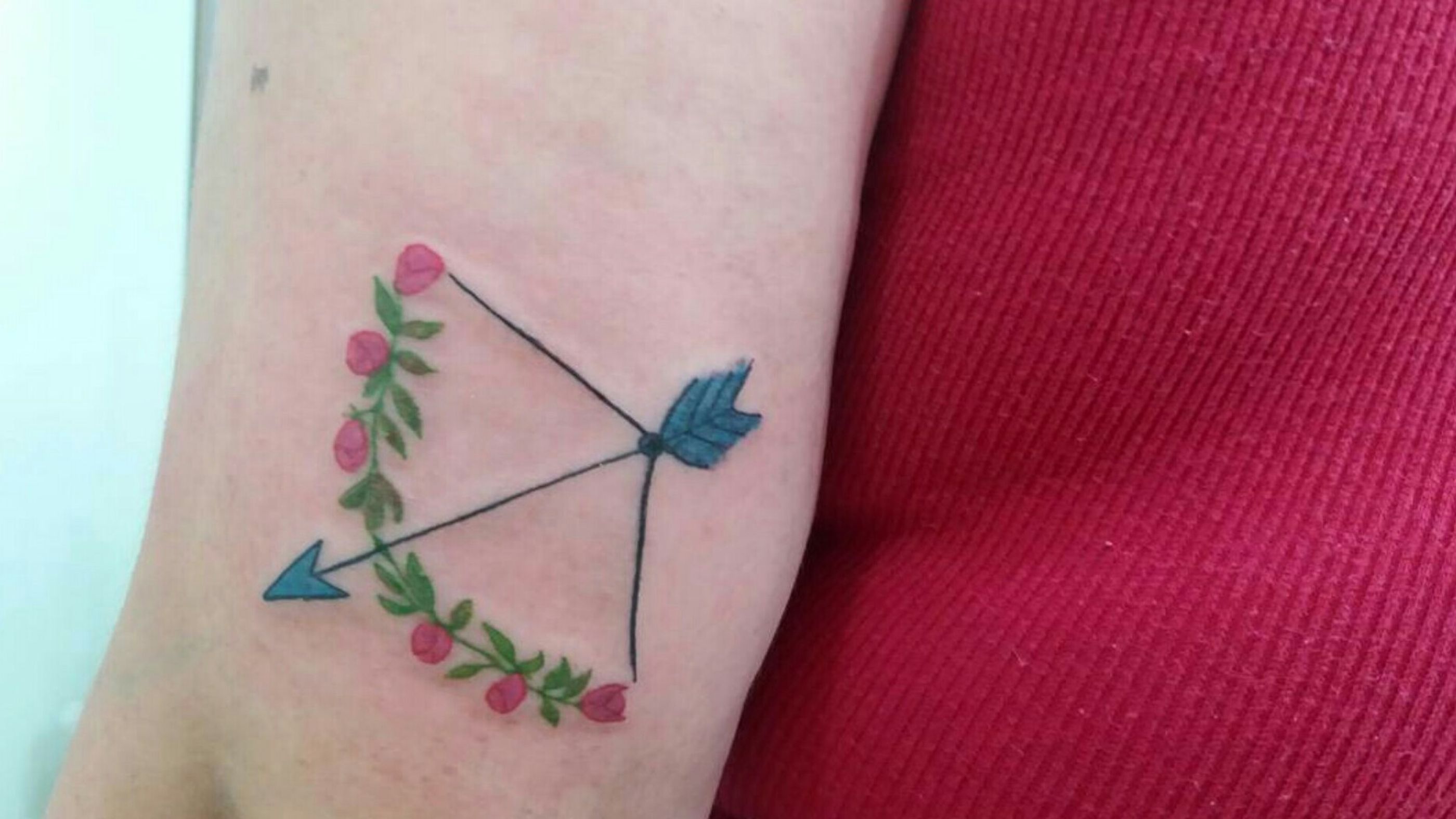 Arco e flecha com flores free hand! #tattoo #tatuagem #flechatattoo #flores #flortattoo #freehandtattoo #freehandart #freehand #viperink #grupoamazon #emestattooshop