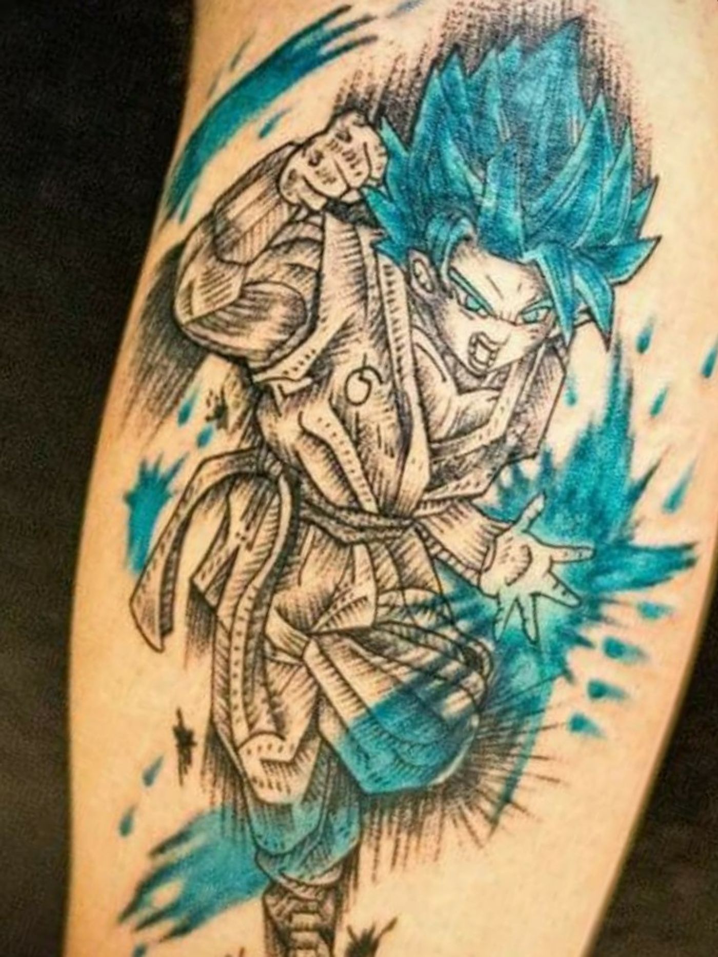 #Desenho autoral! Tatuagem feita no Studio #premaarttattoo no #riodejaneiro . #dragonballtattoo #dragonballdrawing #dragonballtattoo #dragonballsuper #goku #watercolortattoo #tatuagemaquarela #tattoo #watercolor #aquarela #aquarelle #eletrickink #blue