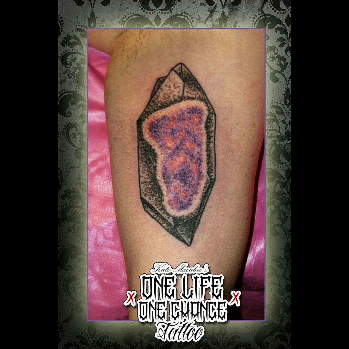 Dotwork concept of a geode, designed and tattooed by @KatoMacabre