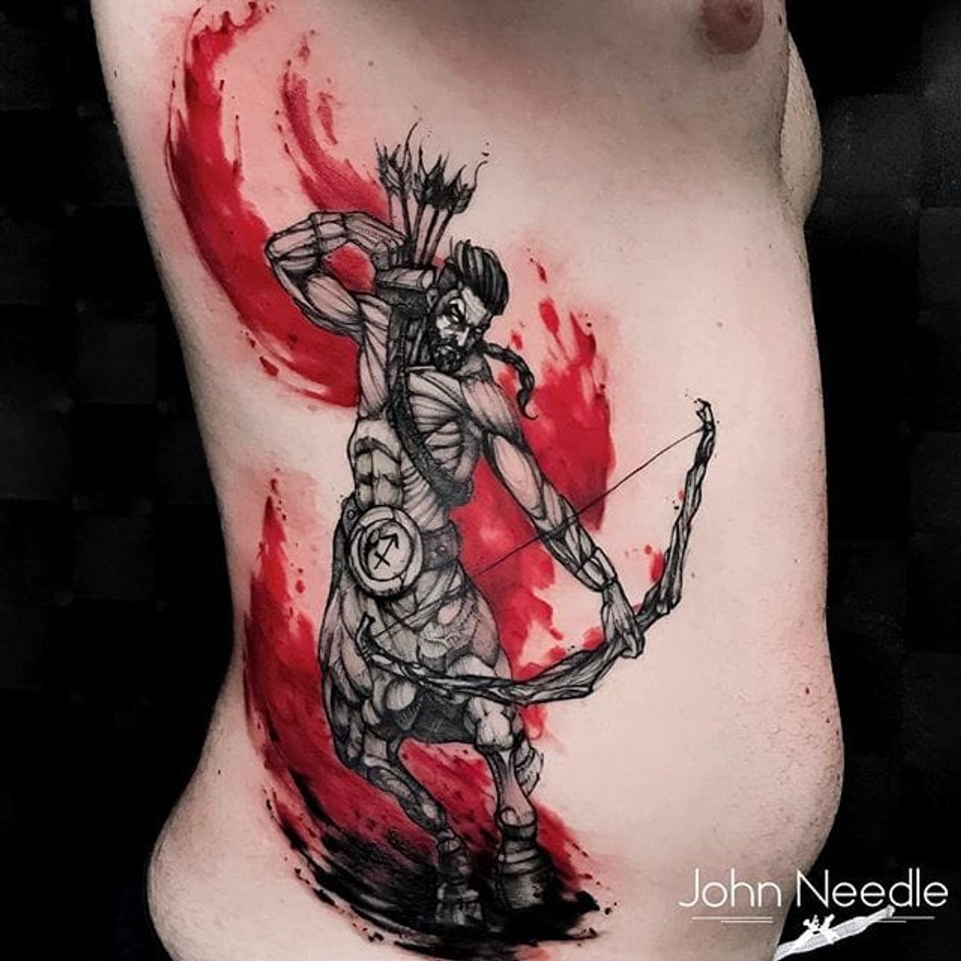 #JohnNeedle #brasil #brazil #brazilianartist #tatuadoresdobrasil #aquarela #watercolor #colorido #colorful #sagitario #sagitarius #homem #man #arrow #arcoeflecha #blackwork