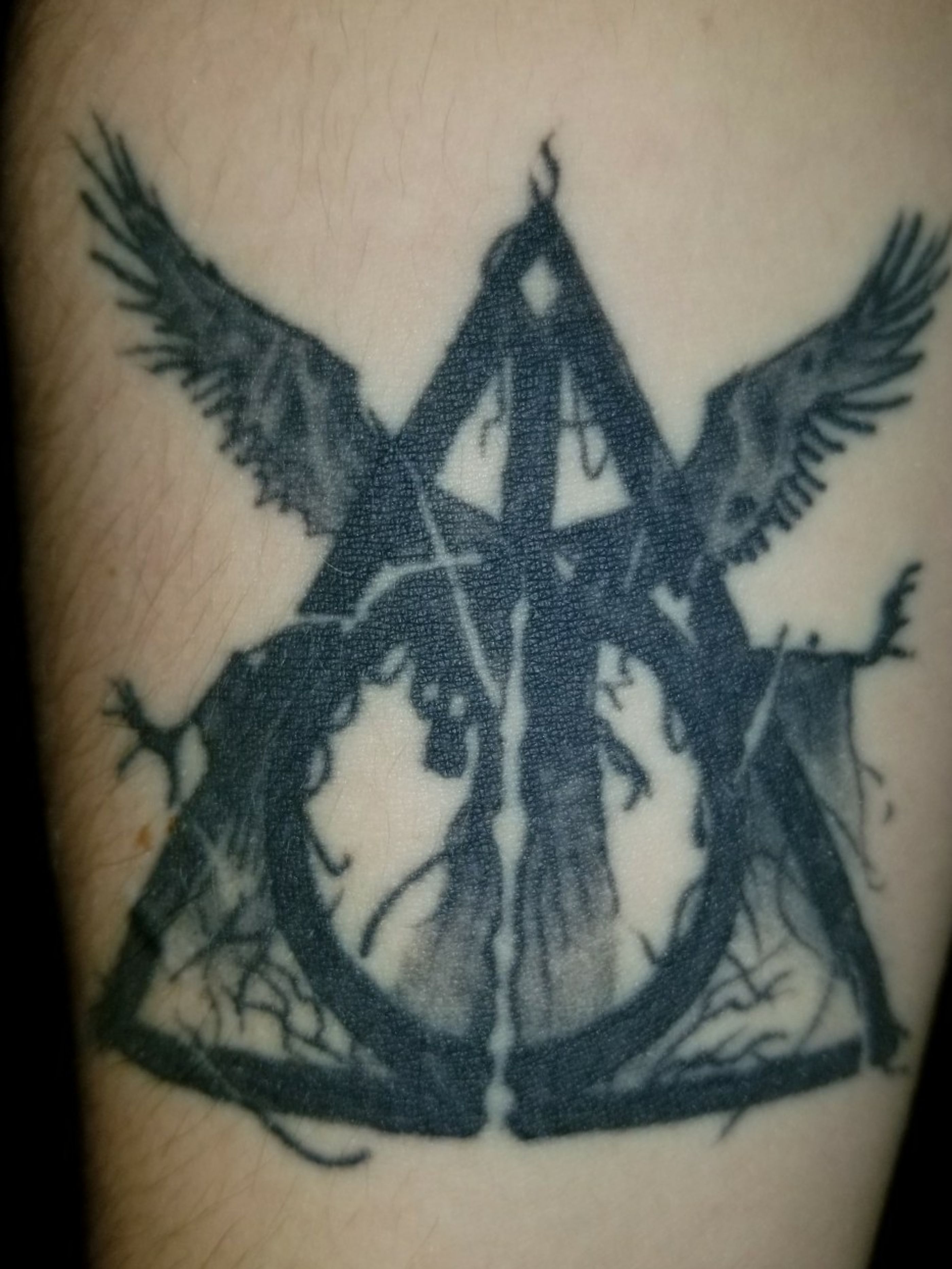 My Deathly Hallows tattoo. #harrypotter #deathlyhallows #HarryPotterTattoos #HPmagictattoo #Black #HarryPotterInk #