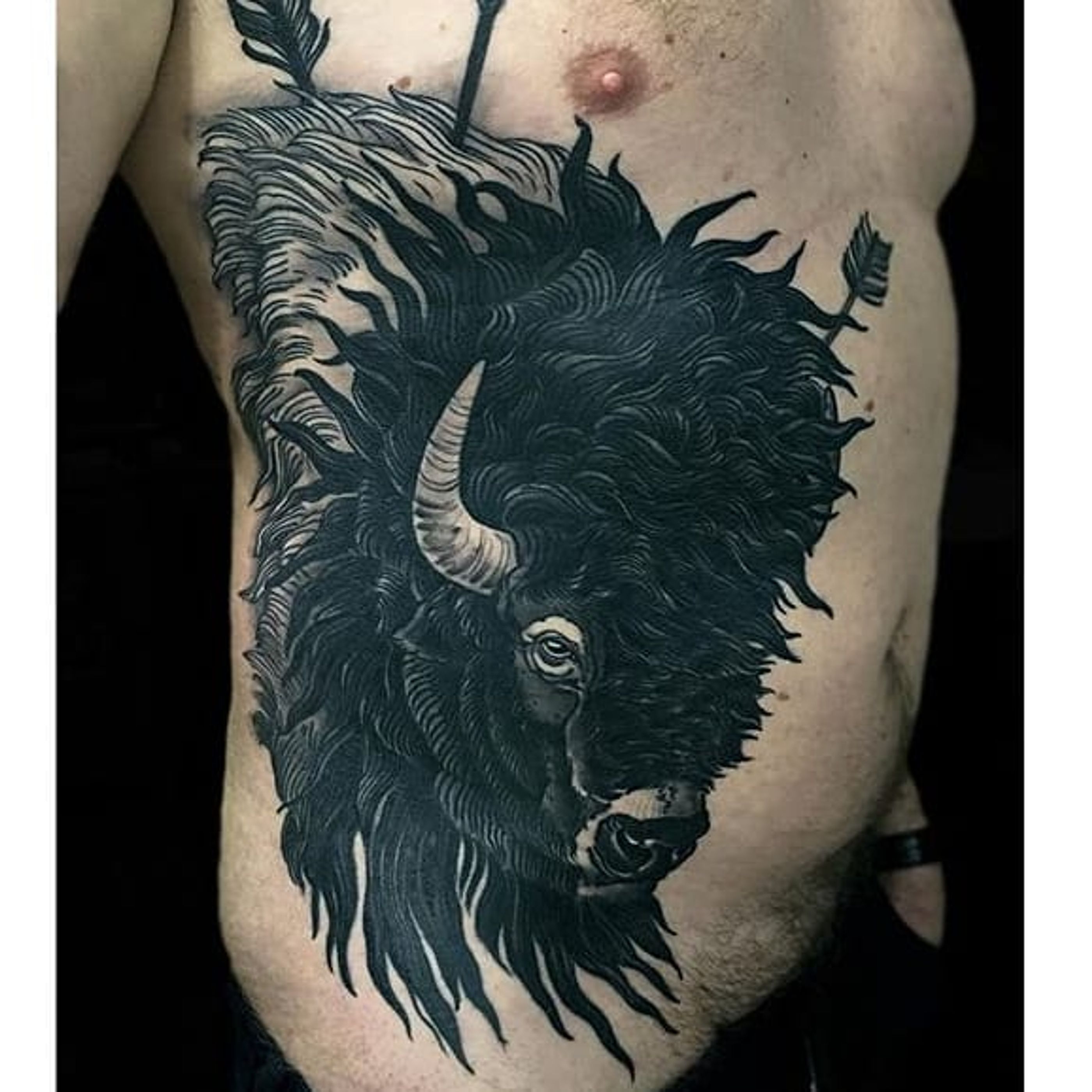 Buffalo Tattoo by Rakov #Buffalo #BuffaloTattoo #Bison #AmericanTraditional #Traditional #Rakov
