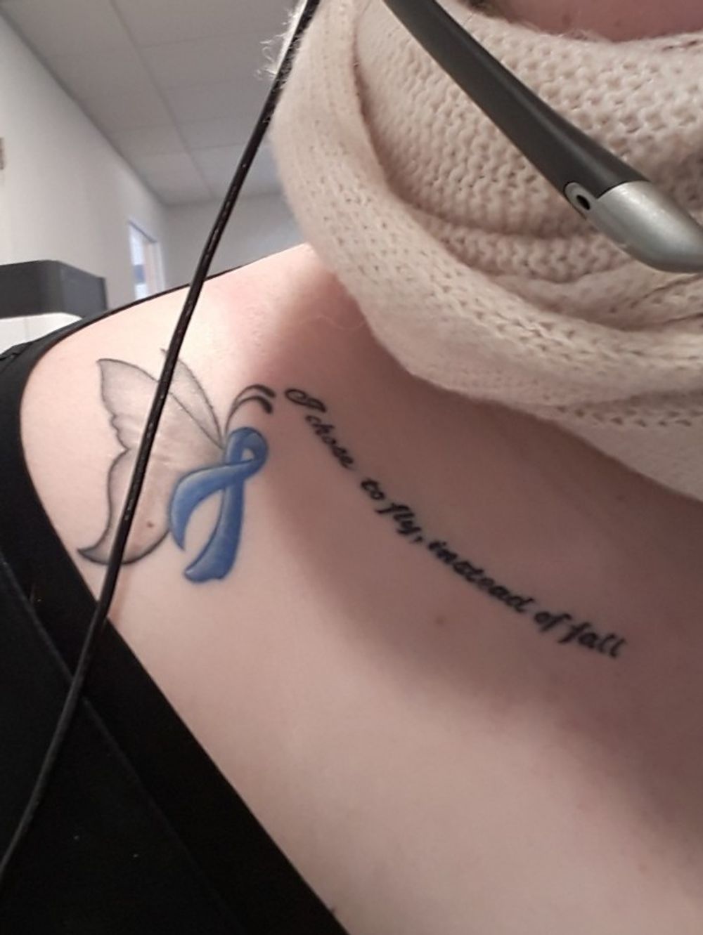 Child abuse survivor tattoo "I chose to fly, instead of fall"πŸ’ͺπŸ’ͺπŸ¦‹πŸ¦‹
