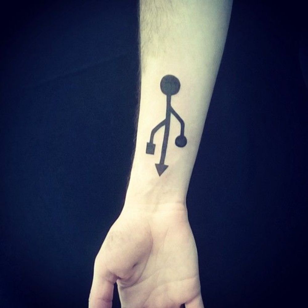 Cool blackwork USB tattoo by Rodrigo Corrêa #USBtattoo #RodrigoCorrêa #blackwork