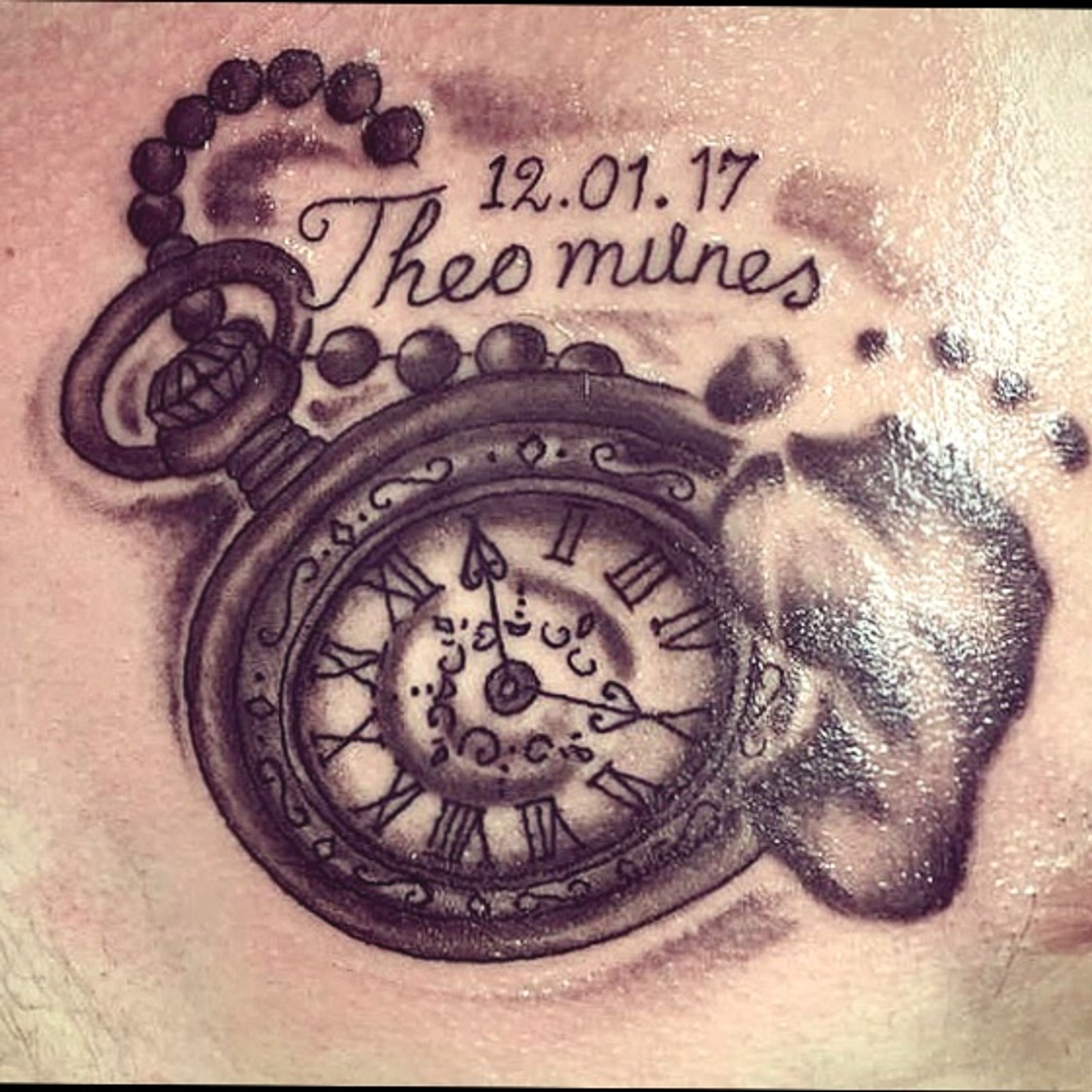 Love my tattoo #tattoo#son#pocketwatch#babyfootprint
