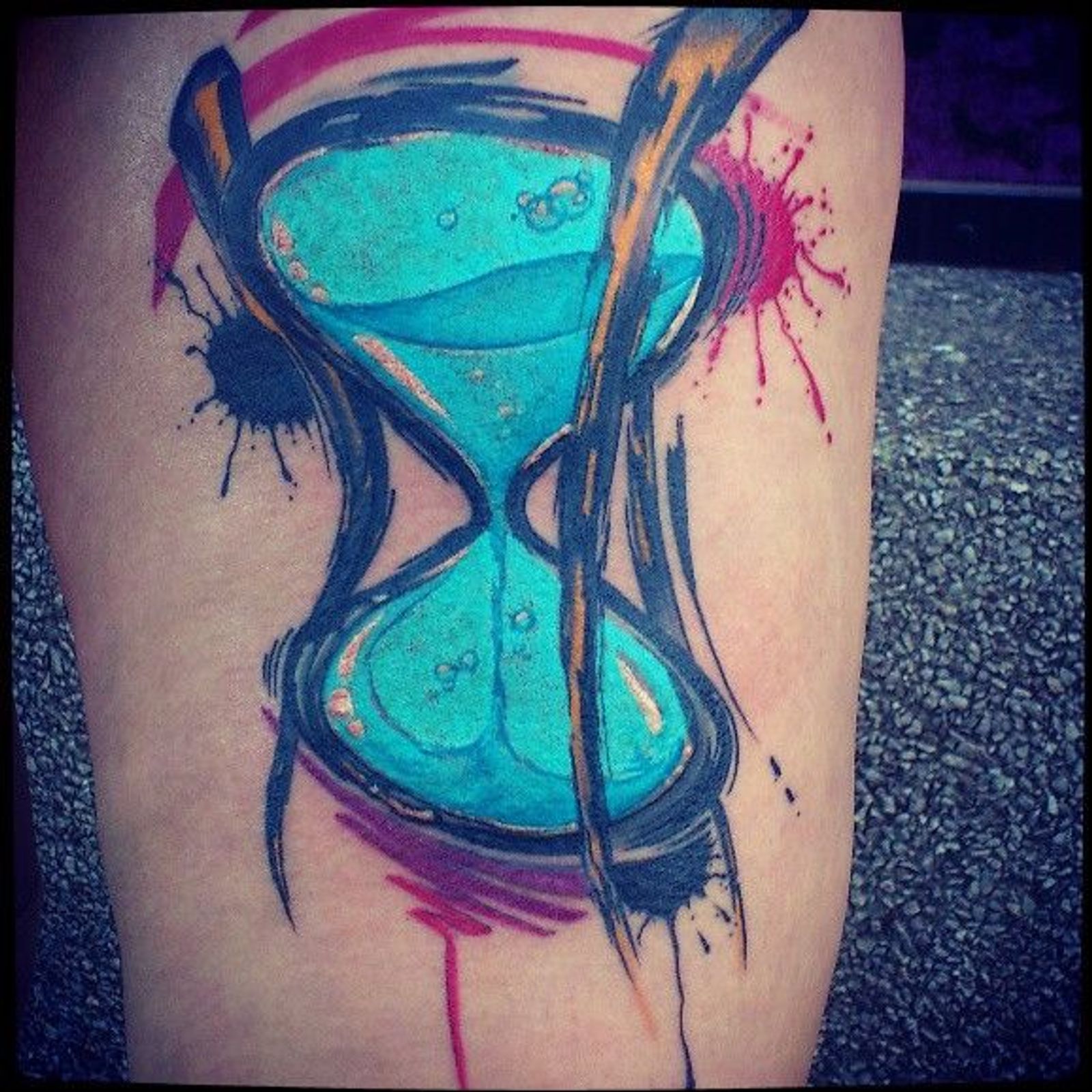 Hourglass tattoo by Szejn Szejnowski @szejno #graffiti #graphic #hourglass #hourglasstattoo #splash
