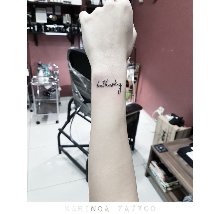 "be the sky" ☁ Instagram: @karincatattoo #sky #script #writing #lettering #small #minimal #little #tiny #arm #tattoo #tattoos #tattoodesign #tattooartist #tattooer #tattoostudio #tattoolove #tattooart #istanbul #turkey #dövme #dövmeci #design #girl #woman