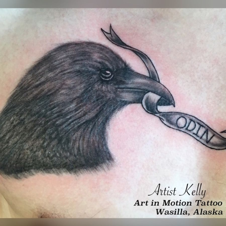 Did this raven head as a father's tribute to his son. #art_in_motion_tattoo #raven #tattoooftheday #raventattoo #blackandgreytattoo #tattoo #alaskatattoo #wasillaalaska #wasillatattoo #veteranowned #tattooartistkelly @art_in_motion_tattoo