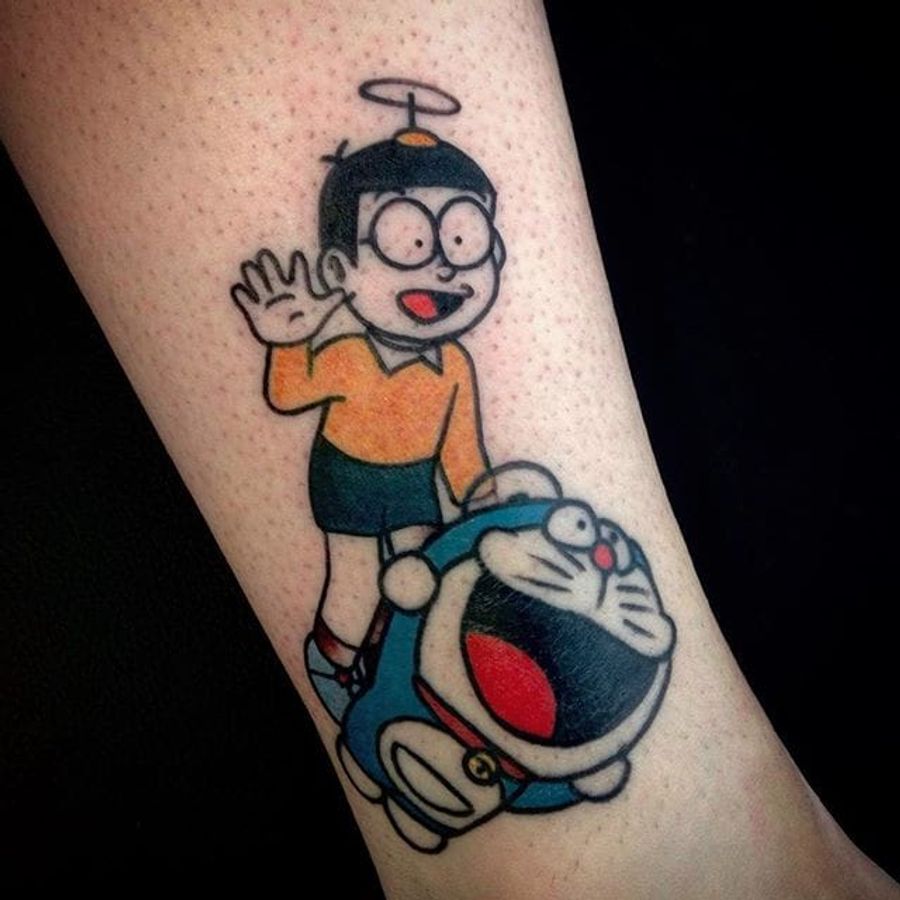 Doraemon tattoo by traditionalchacho on Instagram. #doraemon #neko #cat #anime