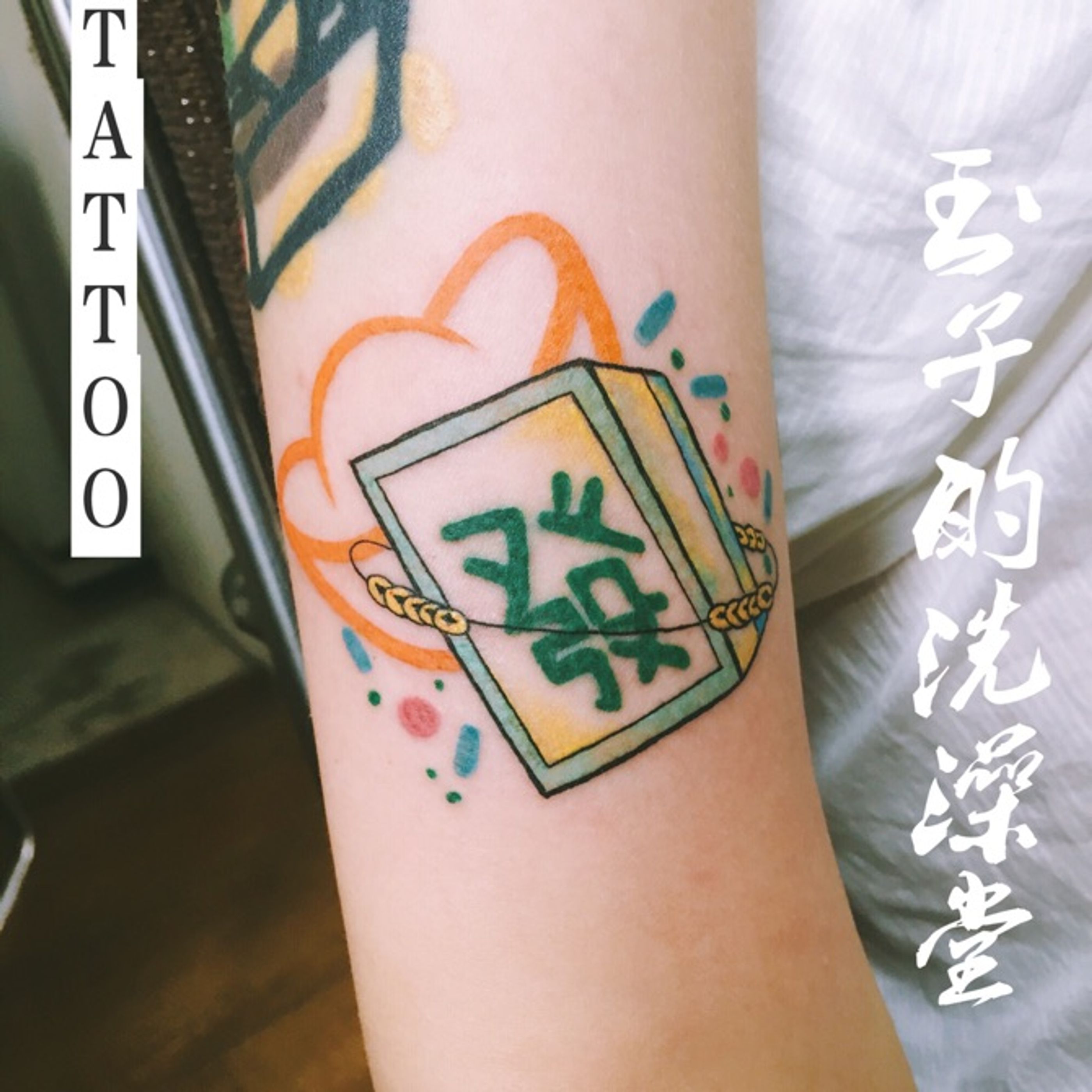 #中国 #newschool #neotrational #color #colorful #colortattoo #cartoon #mahjong #money 麻将,钱串子,元宝,发财,还是那个梦