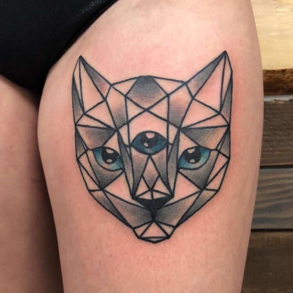 This thigh peice is way cool, geometric third eye cat face. #cat #geometric #thirdeye #animal #thigh