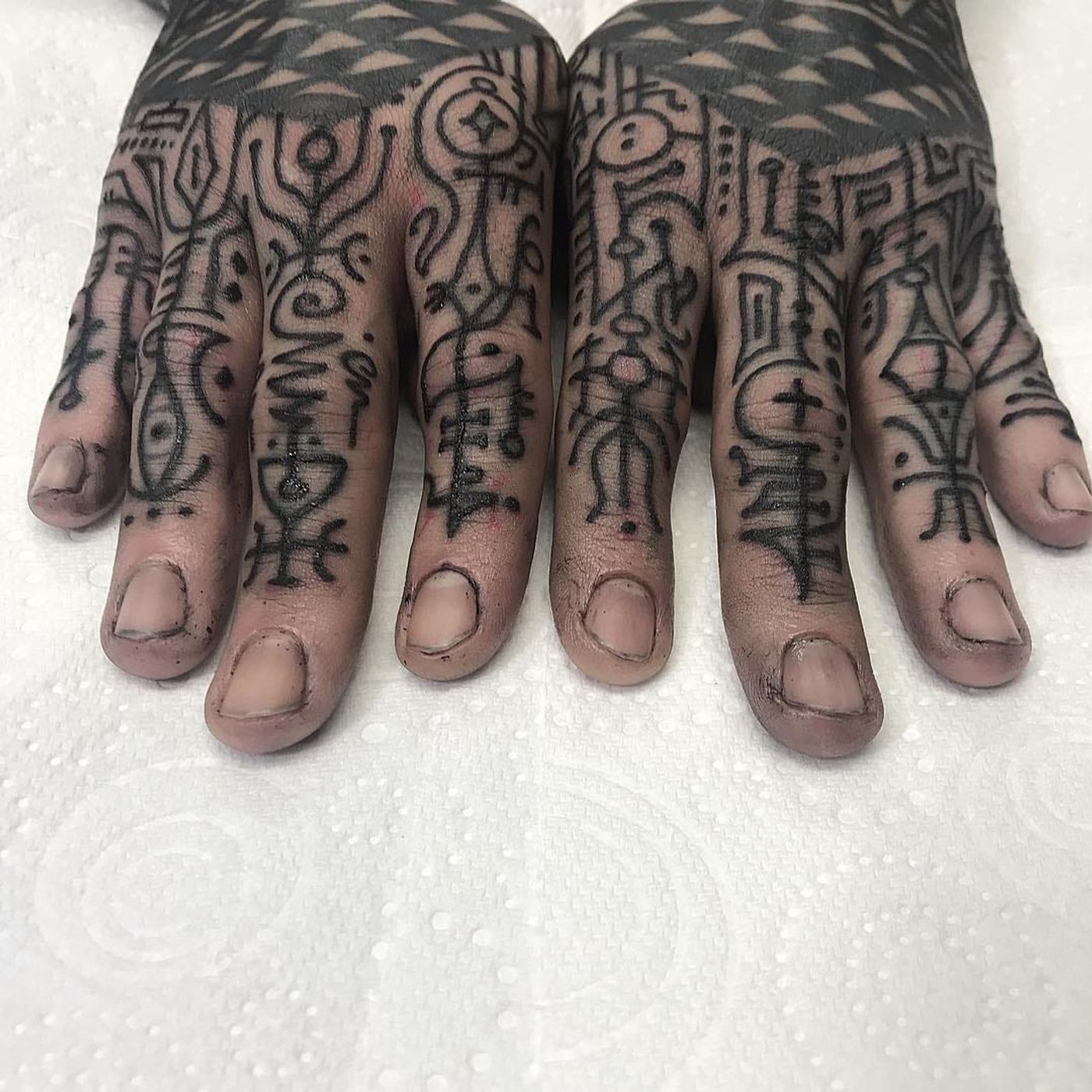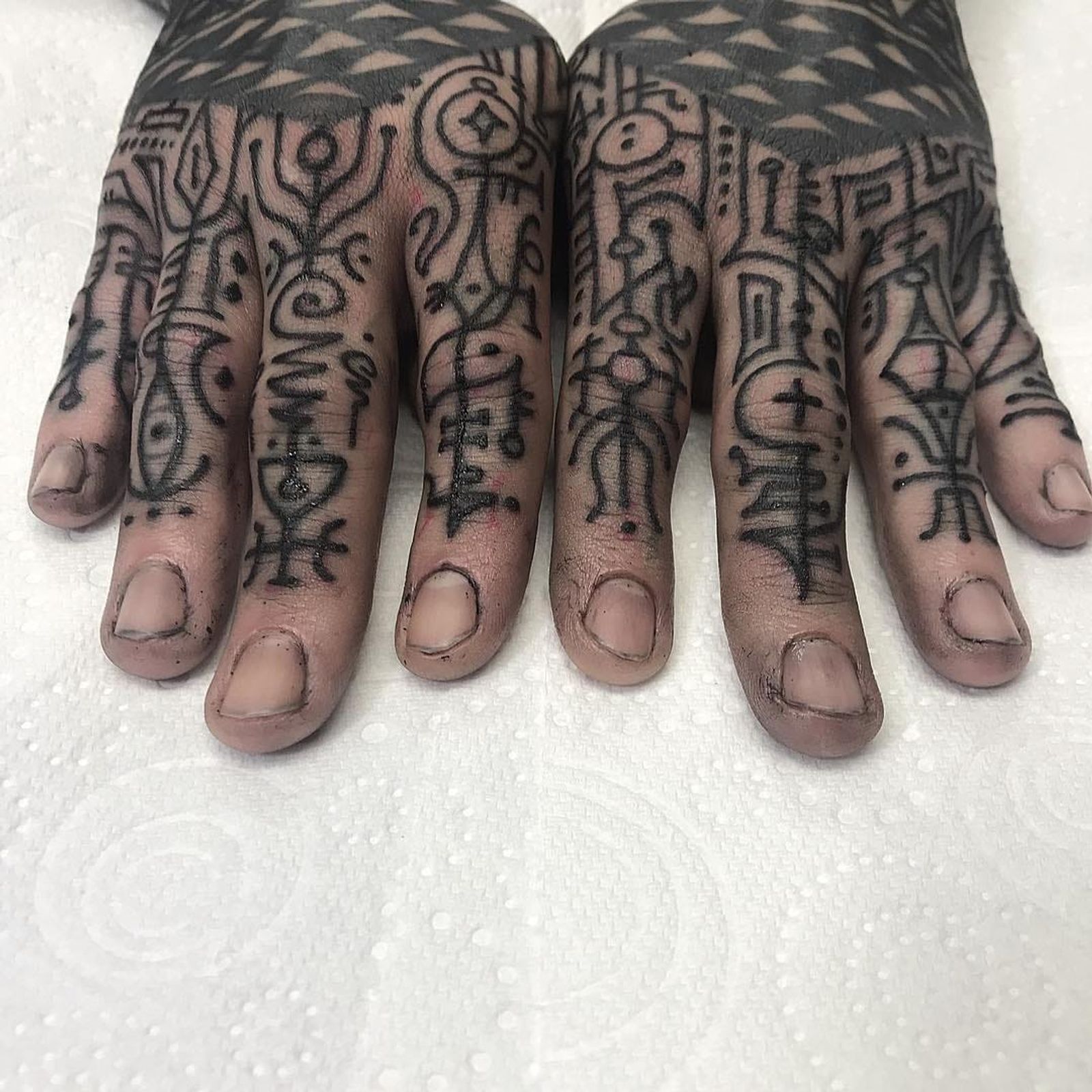 Finger tattoos by Jondix #Jondix #blackandgrey #dotwork #linework #pattern #tribal