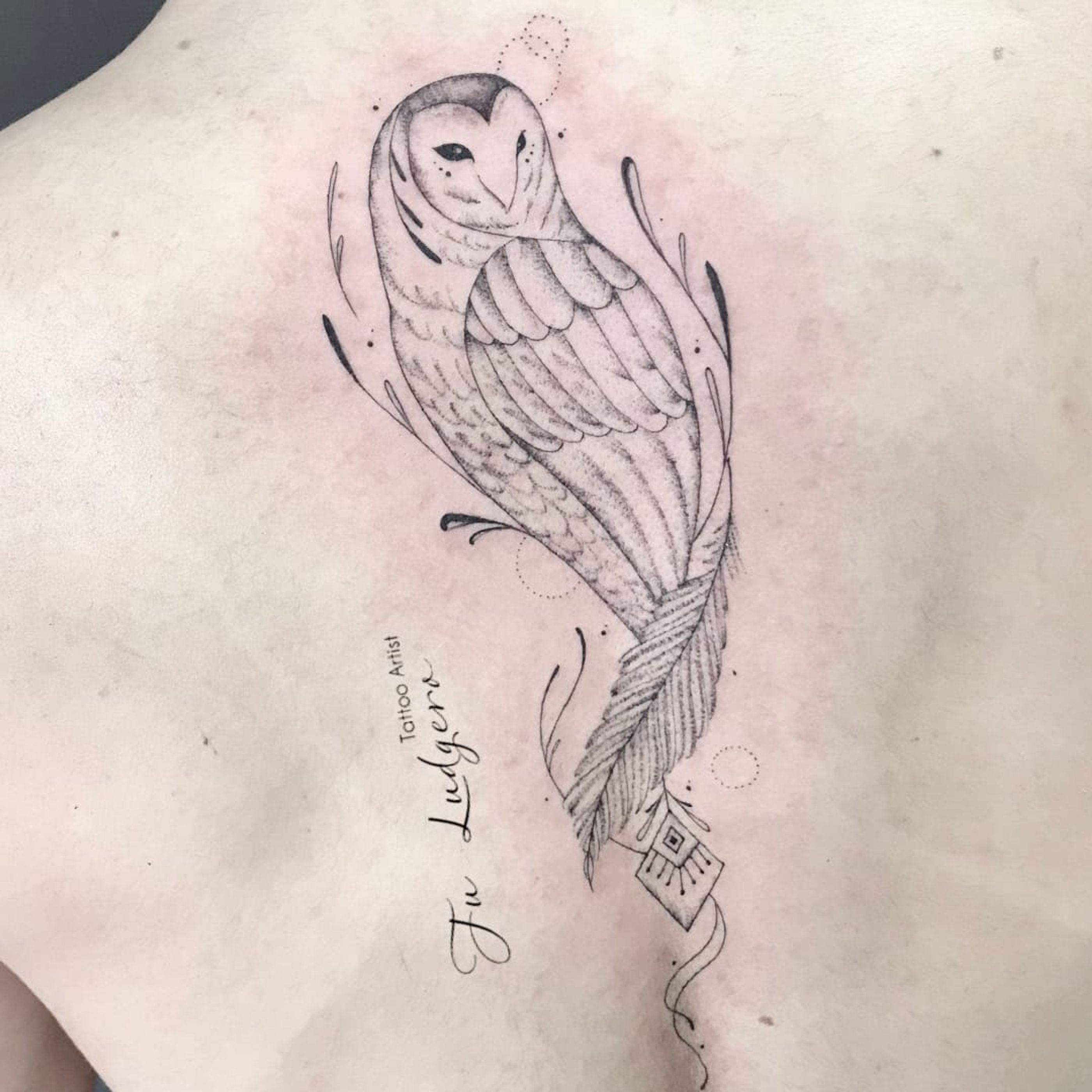 #JulyLudgero #brasil #brazil #brazilianartist #TatuadorasDoBrasil #fineline #blackwork #pontilhismo #dotwork #coruja #owl #ave #passaro #bird #pena #feather