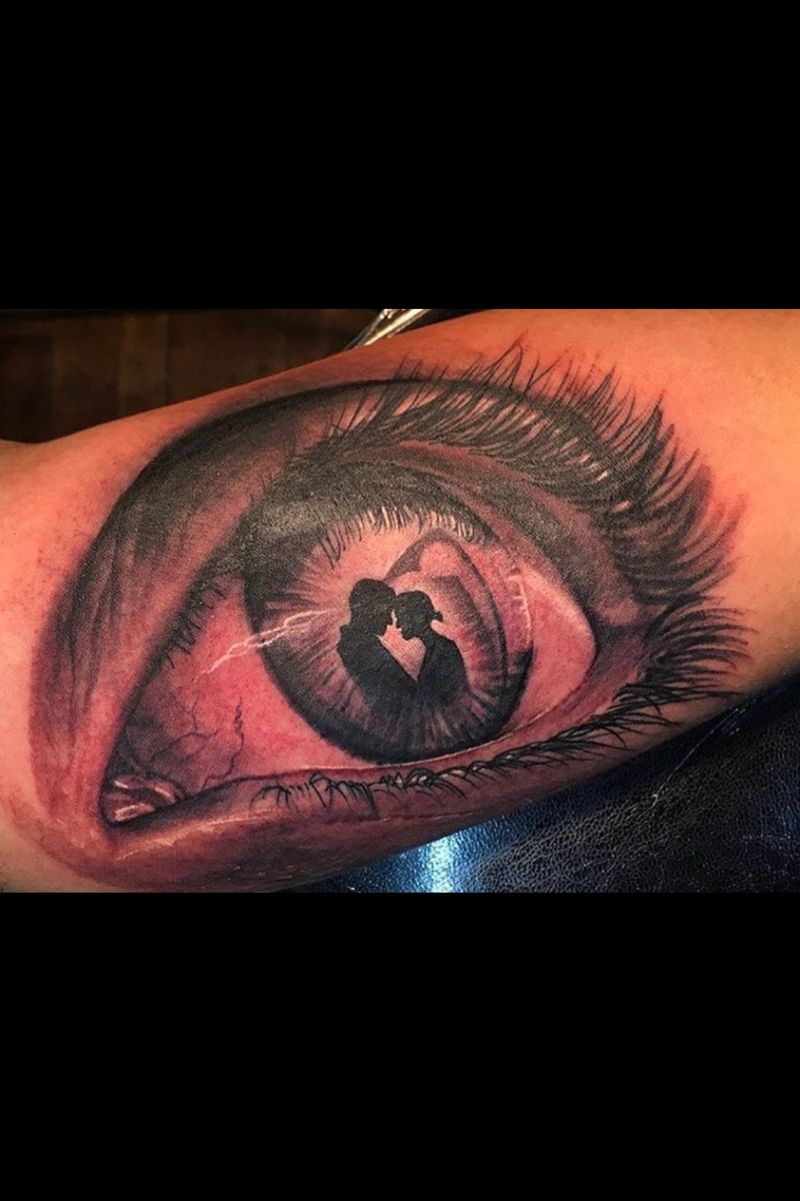 Got this eye with a sillouhette of my parents done by Jensen Ramirez out of Paizleys Wicked Iron tattoo in Tucson, Az