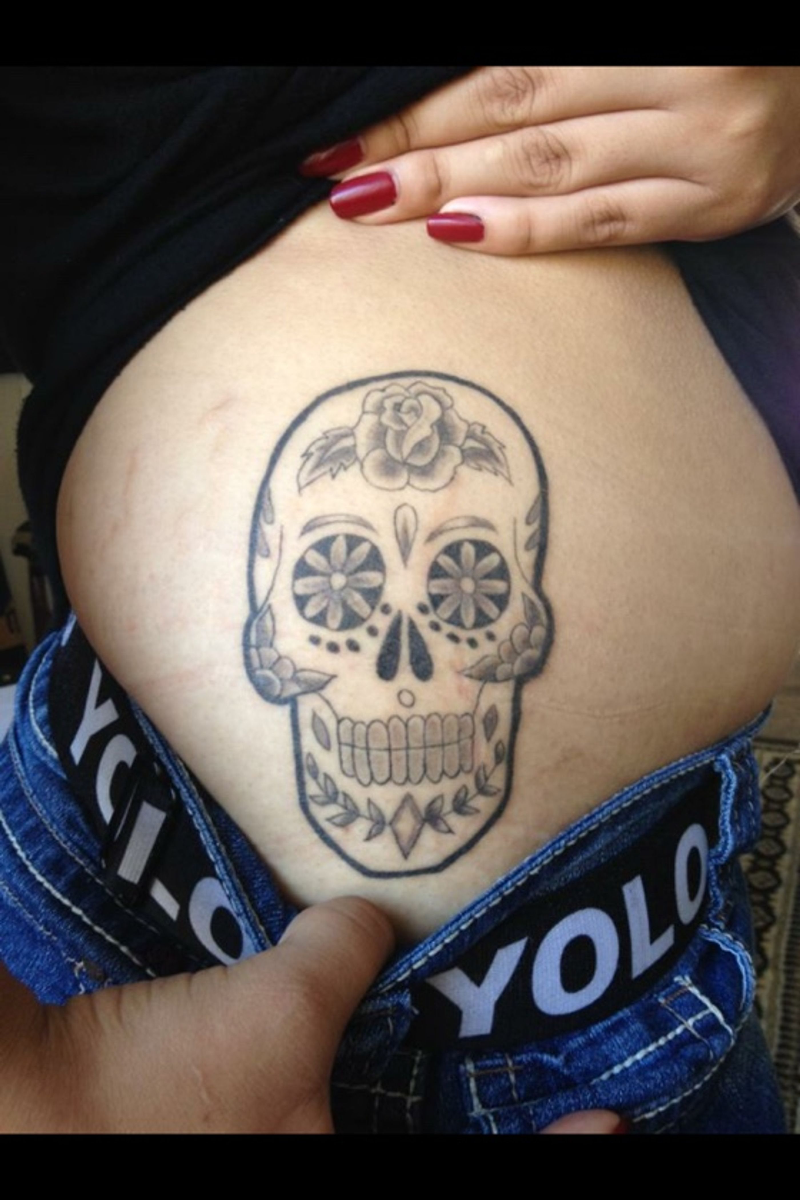 One of two sugar skulls i tattooed on my client #cheyennehawkpen