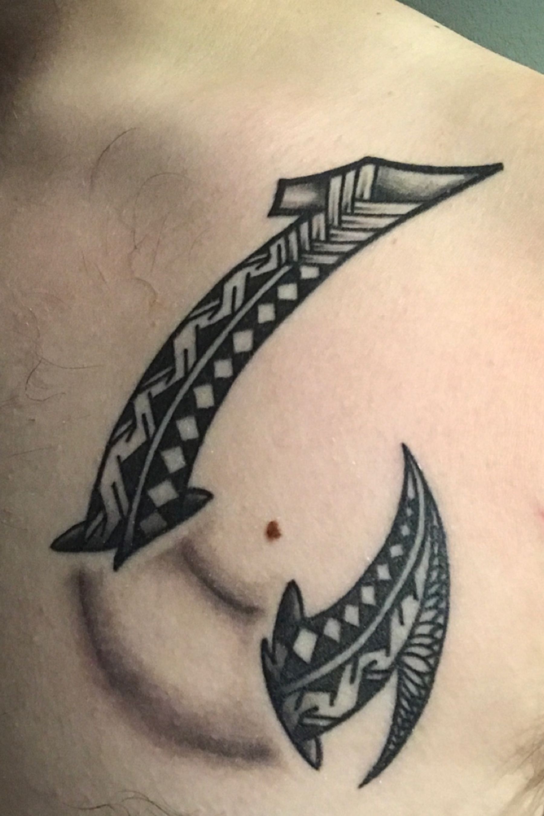 Polynesian Fishhook by Jerry Deramus at Vagabond Tattoo in Maui. #blackandgrey #blackwork #polynesian #realistic
