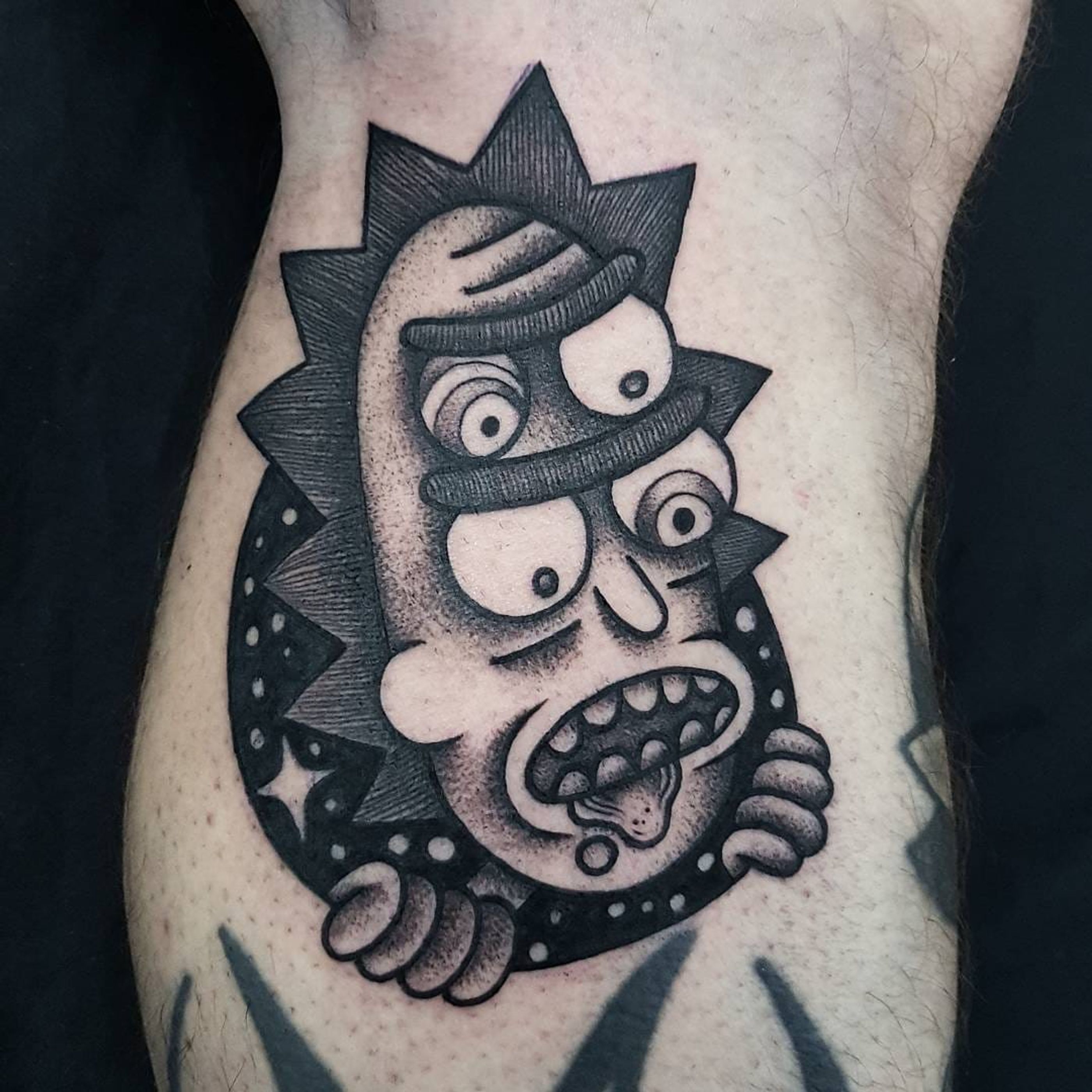 Rick Sanchez tattoo by Uve #Uve #graphic #redink #bold #popart #RickSanchez #RickandMorty #portrait #drool #sparkle #cartoon #AdultSwim