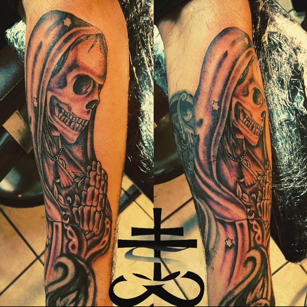 Santa muerte placaso 💀🙏🏼 work around it not mine, ty for looking 🍻🍸 #santamuerte #santamuertetattoo #miflakita #santero #sincaratatuajes #tattoo #tattoos #tattooed #tatuaje #tattooartist #tattooart #ink #inked #inkedgirls #inkedguys #skull #skulltattoo #reaper #candle #blackandgrey #blackandgreytattoo #bold #boldwillhold #arte #instagood #instatattoo #instapic
