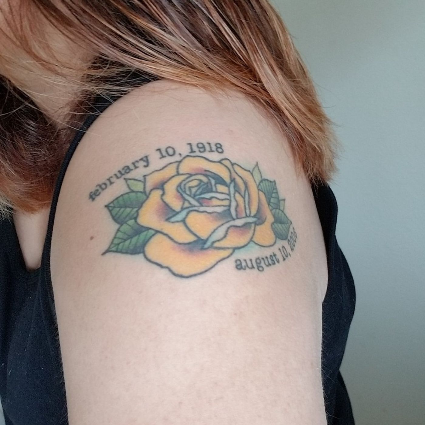 Yellow Rose Memorial Tattoo by Oscar Cuéllar at Mainline Ink in Houston, TX