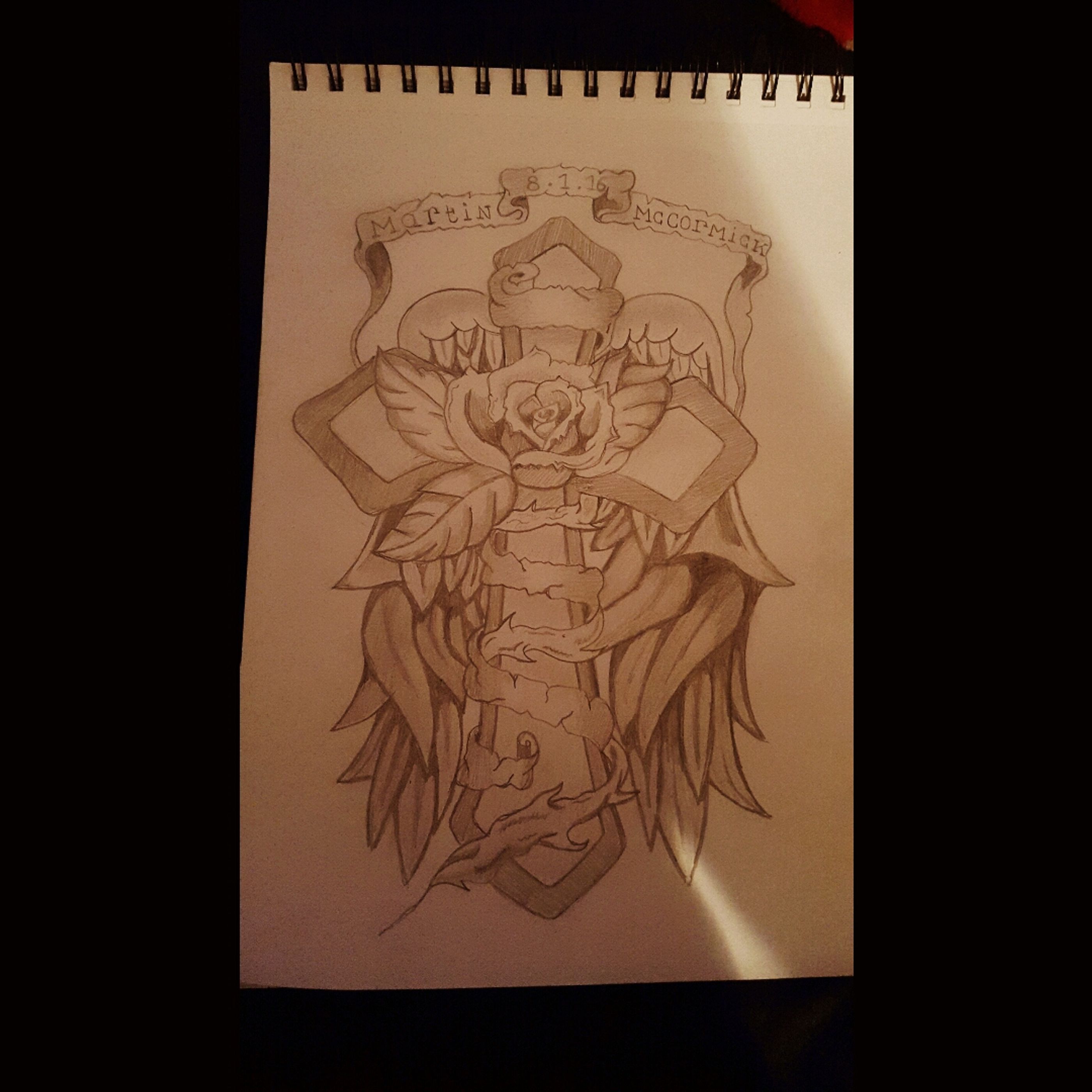 Memorial tattoo/ drawing for someone in my life who passed away recently. His brother got this tattooed on his shoulder