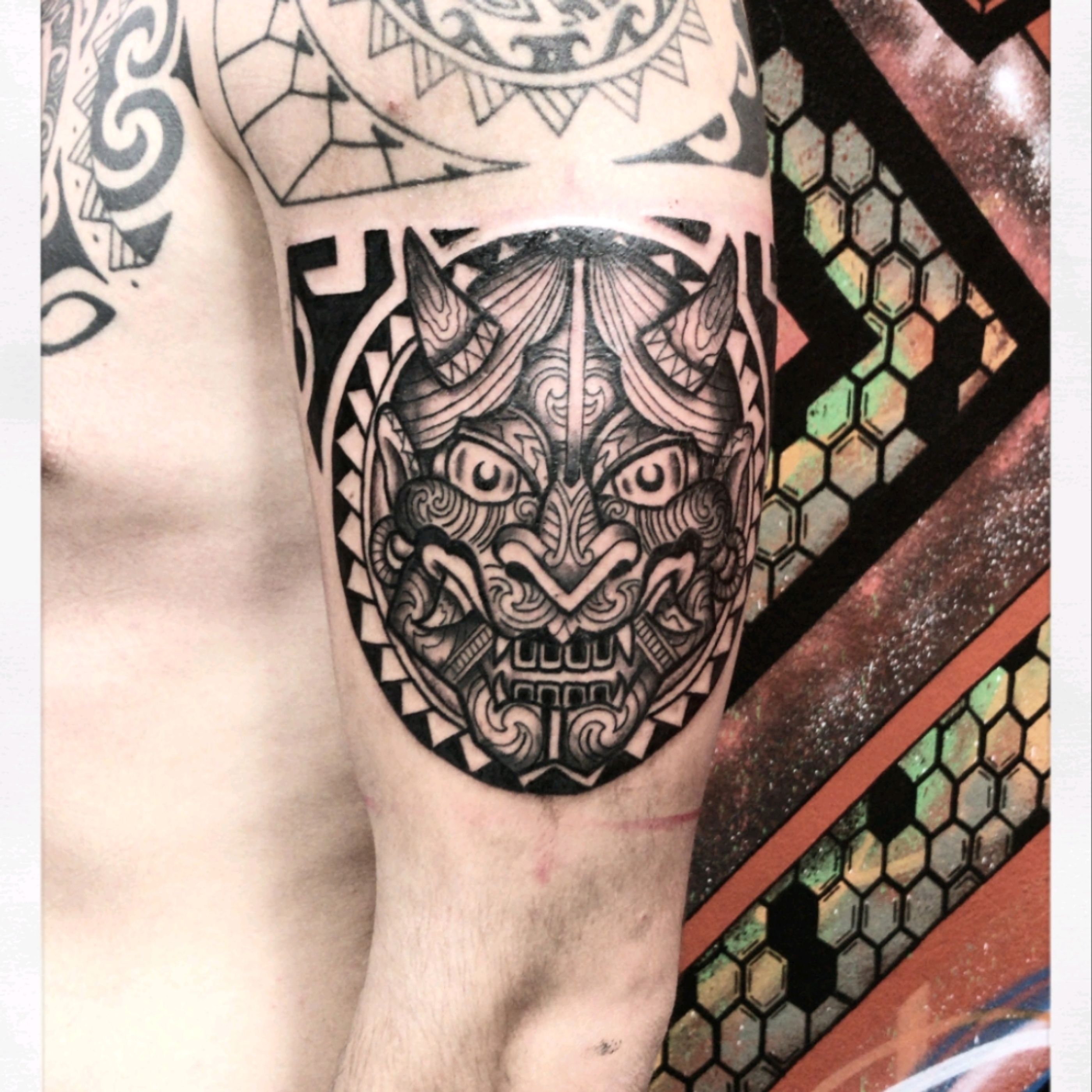 INSTAGRAM the_sym_tattoo #tribal #tribaltattoo #hannya #hannyatattoo #thesymtattoo #moderntribal