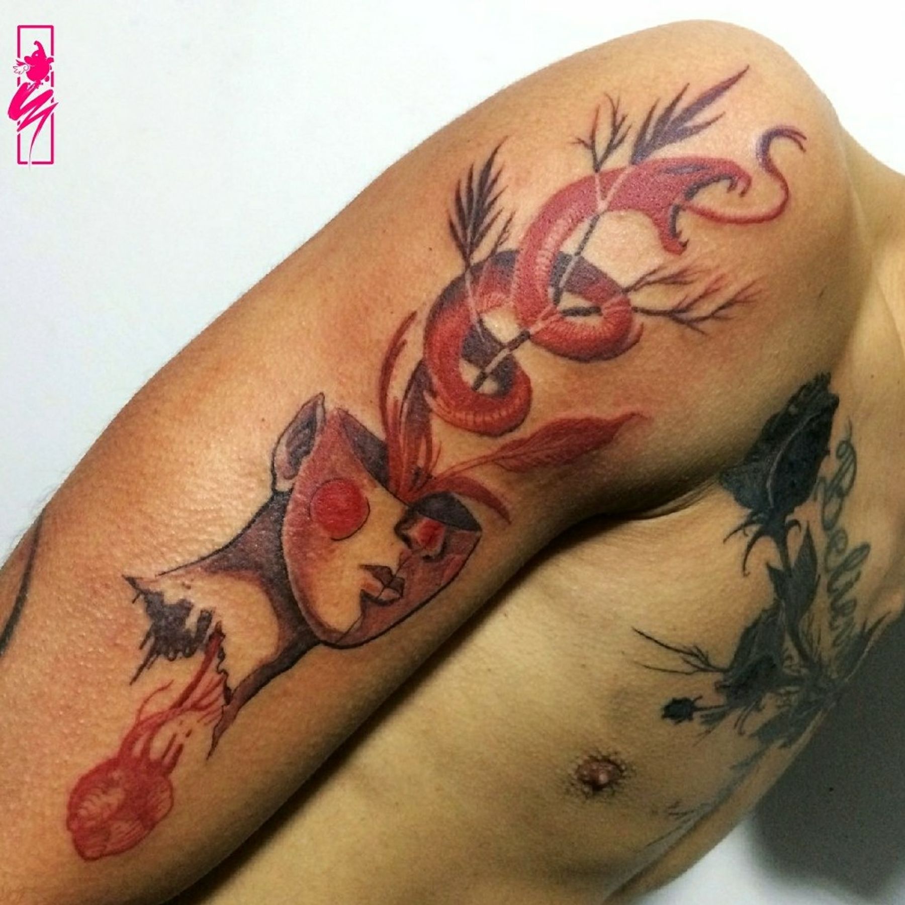 "O pior inimigo" #coloridas #watercolor #newschool #newtraditional #colorfultattoo #originaldesign #originalart #conceptart #mangatattoo #mangastyle