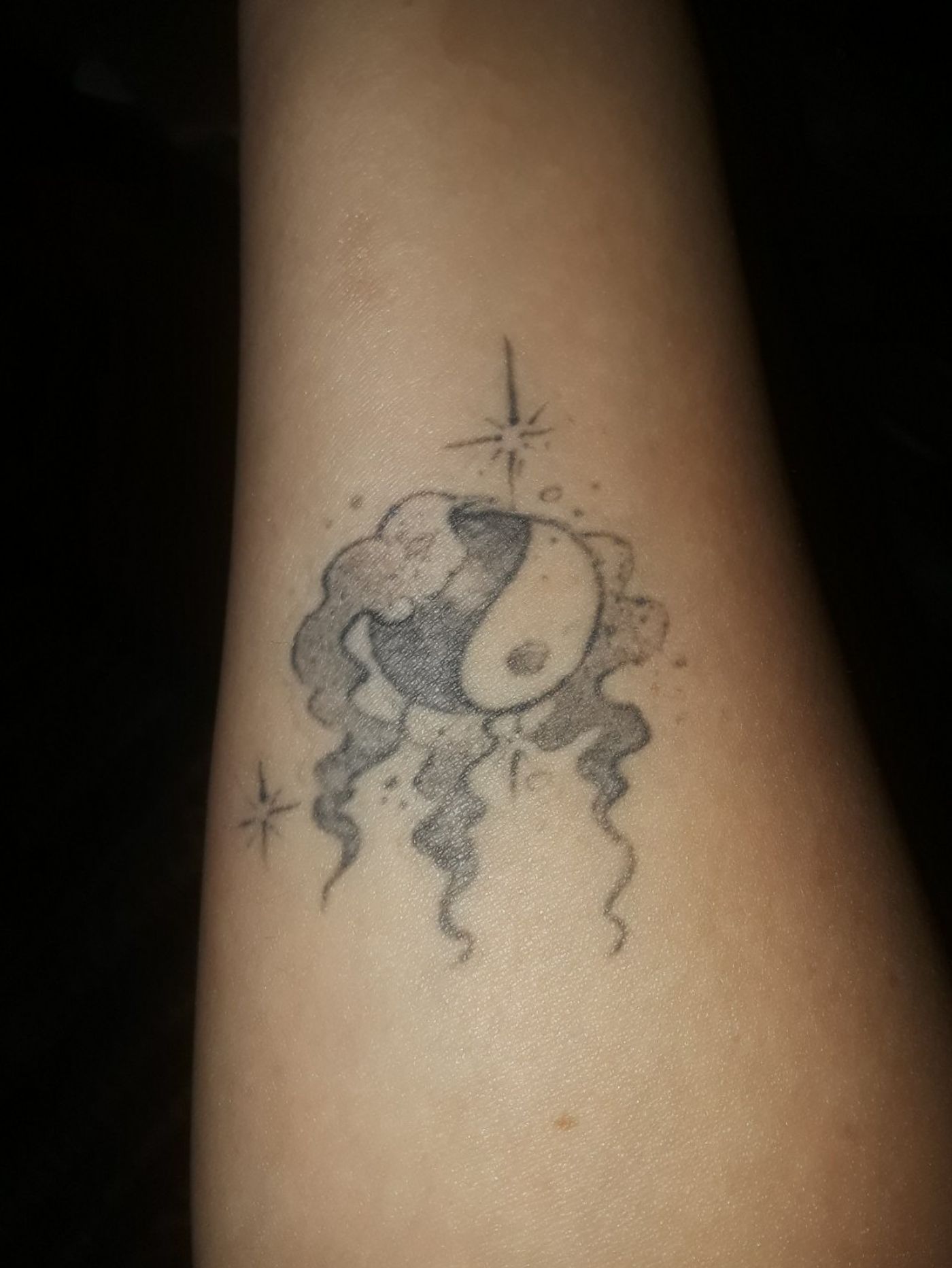 First tattoo done August of 2017 at Enigma Tattoo off of the Delmar Loop in Saint Louis, Missouri by August the artist. I was trying obtain inner peace, but felt like a cat scratching me repeatedly.