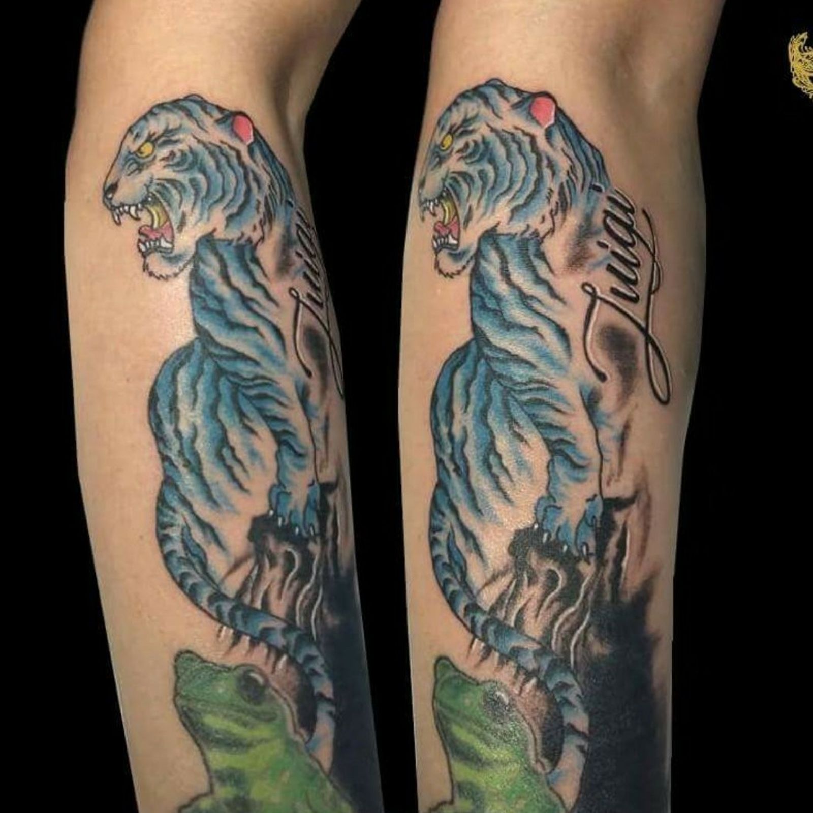 Tiger for cover of a name. #tiger #CoverUpTattoos #oldschooltattoos