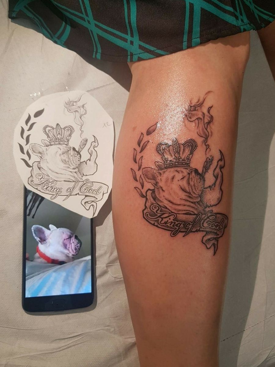 after a photo, tattoo of a bulldog made during a convention #bulldogfrances #bulldog #frenchbulldog #blackwork