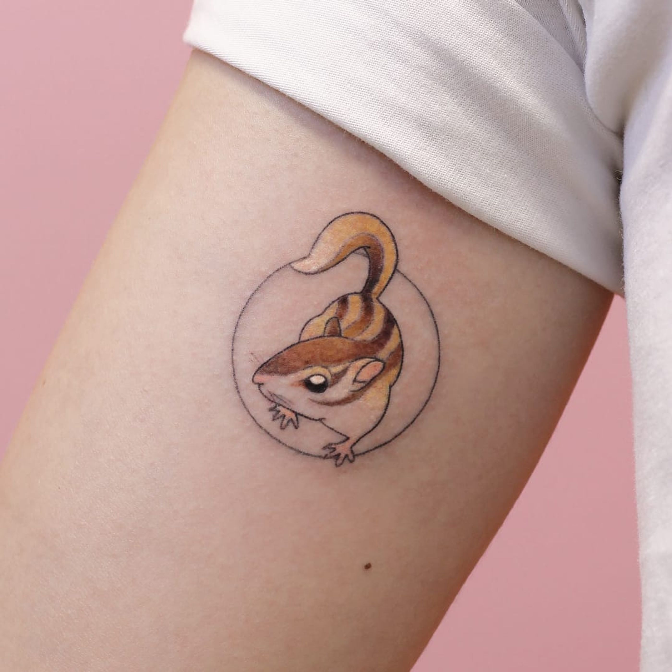 Chipmunk cutie by Sharon aka sharry.ink #Sharryink #handpoketattoos #color #chipmunk #animal #cute #circle #nonelectric #stickandpoke