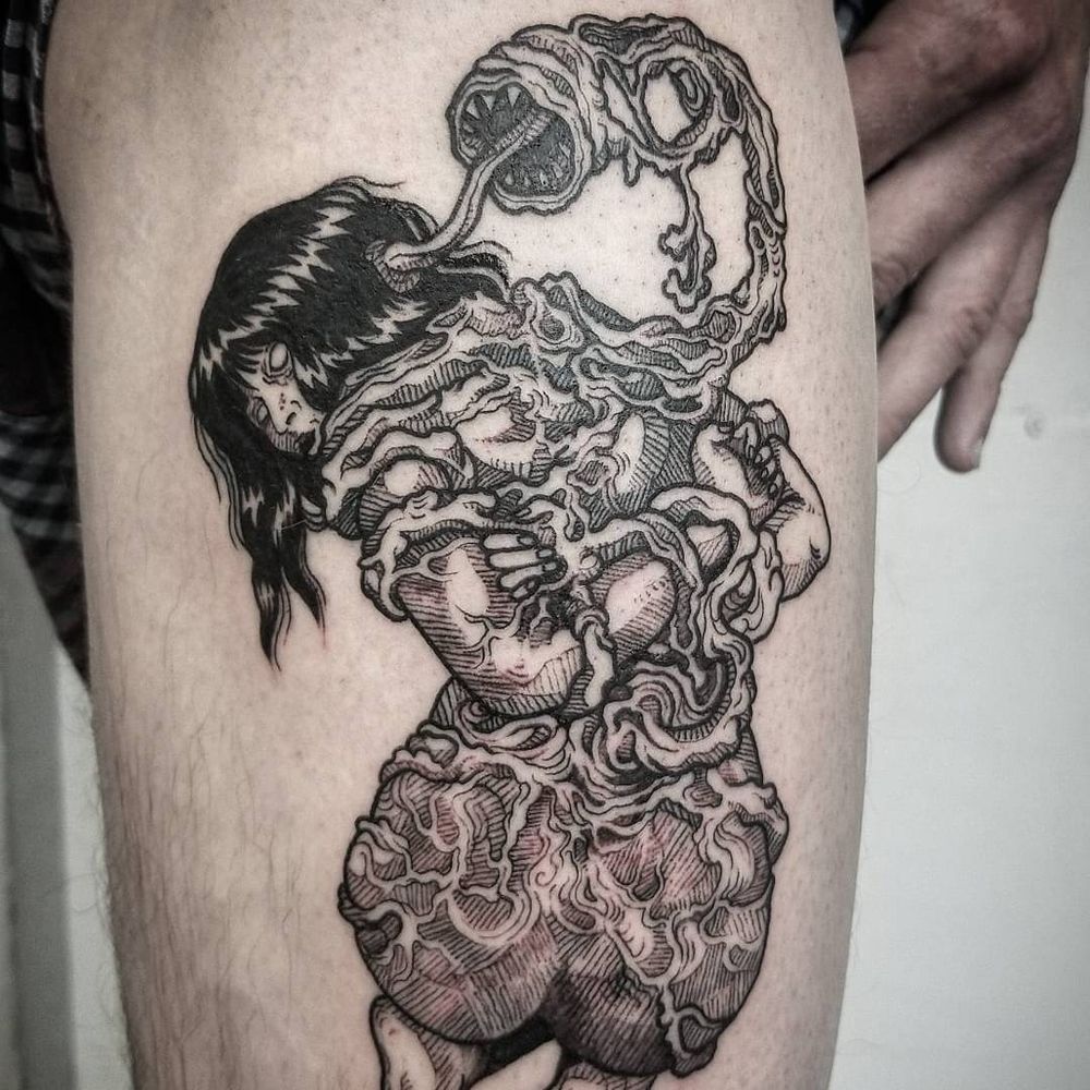 tattoo by Silky Jo #SilkyJo #qpocttt #qpoc #pridemonth #pride #lgbtq #lady #bondage #surreal #monster #ooze #demon #strange