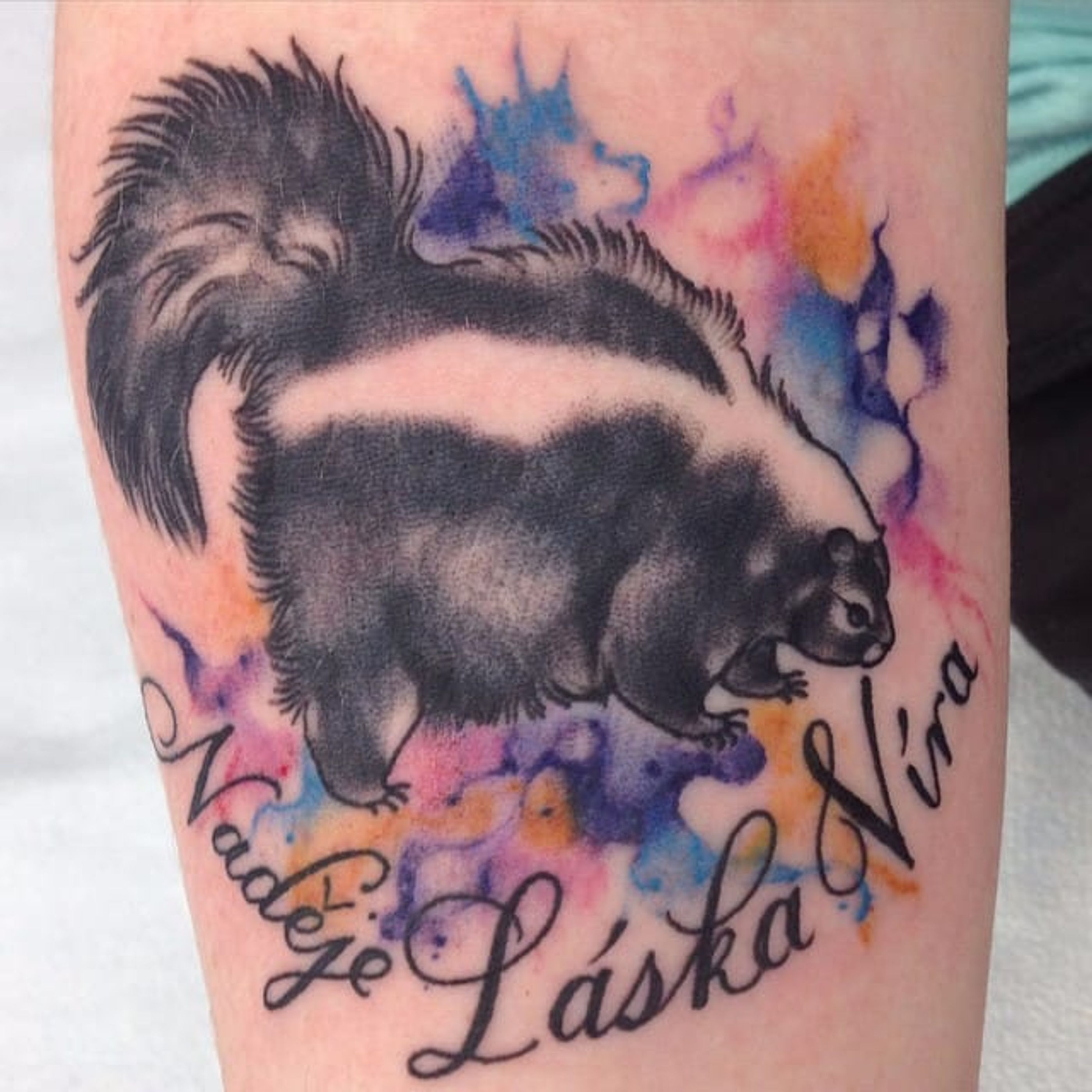 Skunk Tattoo by Arley Macdonald #Skunk #SkunkTattoo #AnimalTattoo #WildlifeTattoos #ArleyMacdonald