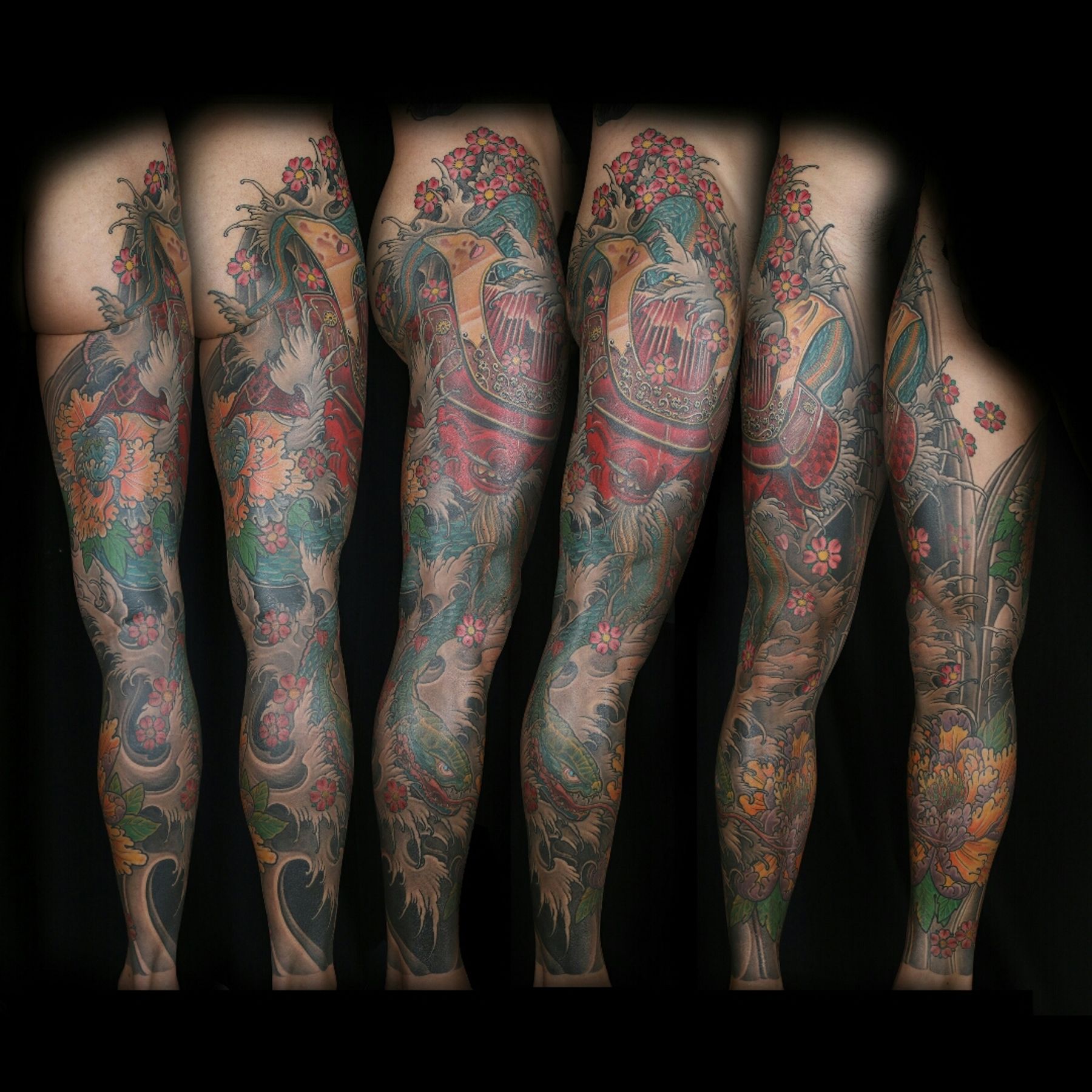 Japanese leg sleeve!! Tattoo done by Mase @ Eternal Instinct Tattoo in Melbourne, Australia!! #tattoo #legsleeve #japanesesleeve #japanese #samuraitattoo #snaketattoo #cherryblossomtattoo #melbourne #tattooartist #legtattoo